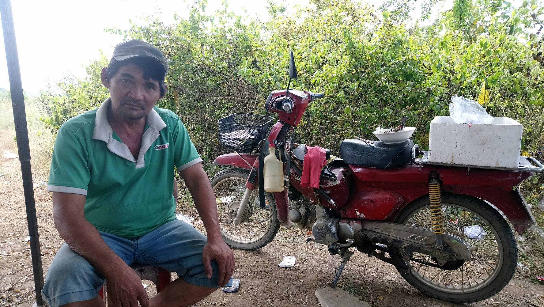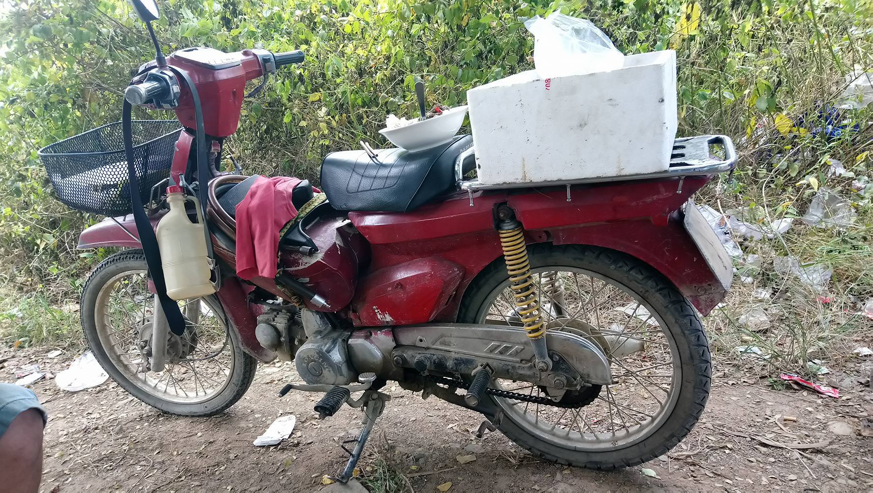 Ông Minh “cô đơn” bên chiếc xe máy cà tàng, là phương tiện mưu sinh và hành nghề trừ gian của mình.