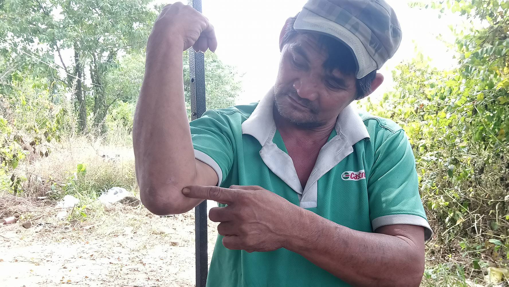 “Trong lần đi nhặt ve chai, tôi bắt gặp cảnh 2 gã cướp dí dao vào cổ khống chế cướp một đôi nam nữ sinh viên tại khu vực hồ đá. Gặp cảnh bất bình, sẵn có cây tầm vông trong bao ve chai, tôi rút cây ra lao tới ngăn cản thì bị chúng chống trả lại. Hai đứa nhỏ sinh viên hôm đó không mất tài sản, nhưng tôi thì bị chúng cắt một nhát đứt cọng gân”, ông vừa chỉ vào vết lõm trên cánh ta phải như để chứng minh.