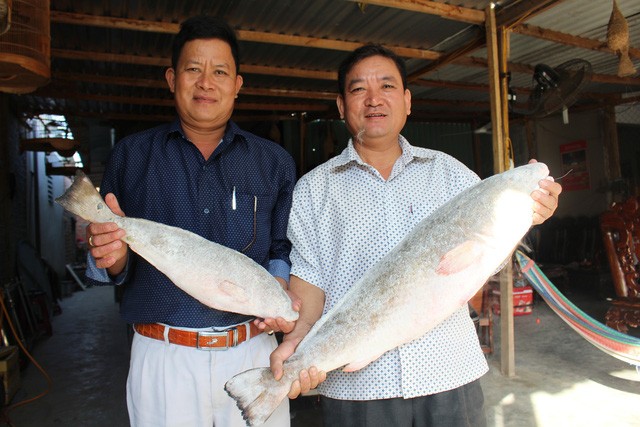 “Chúng tôi dùng mồi là tôm tươi, đi từ 5h sáng đến 11h trưa thì câu được con cá sủ vàng đầu tiên, và 12h tiếp tục câu được con cá thứ hai” - anh Hằng kể.