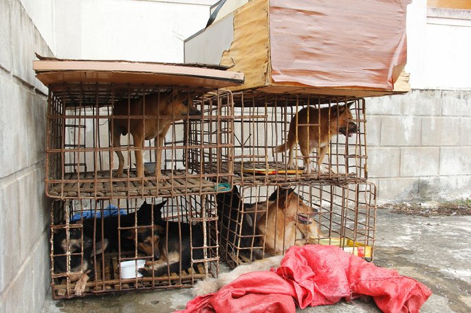 Những con chó do những kẻ ăn trộm dùng xe biển số giả chở đi bán. Ảnh VTC News.