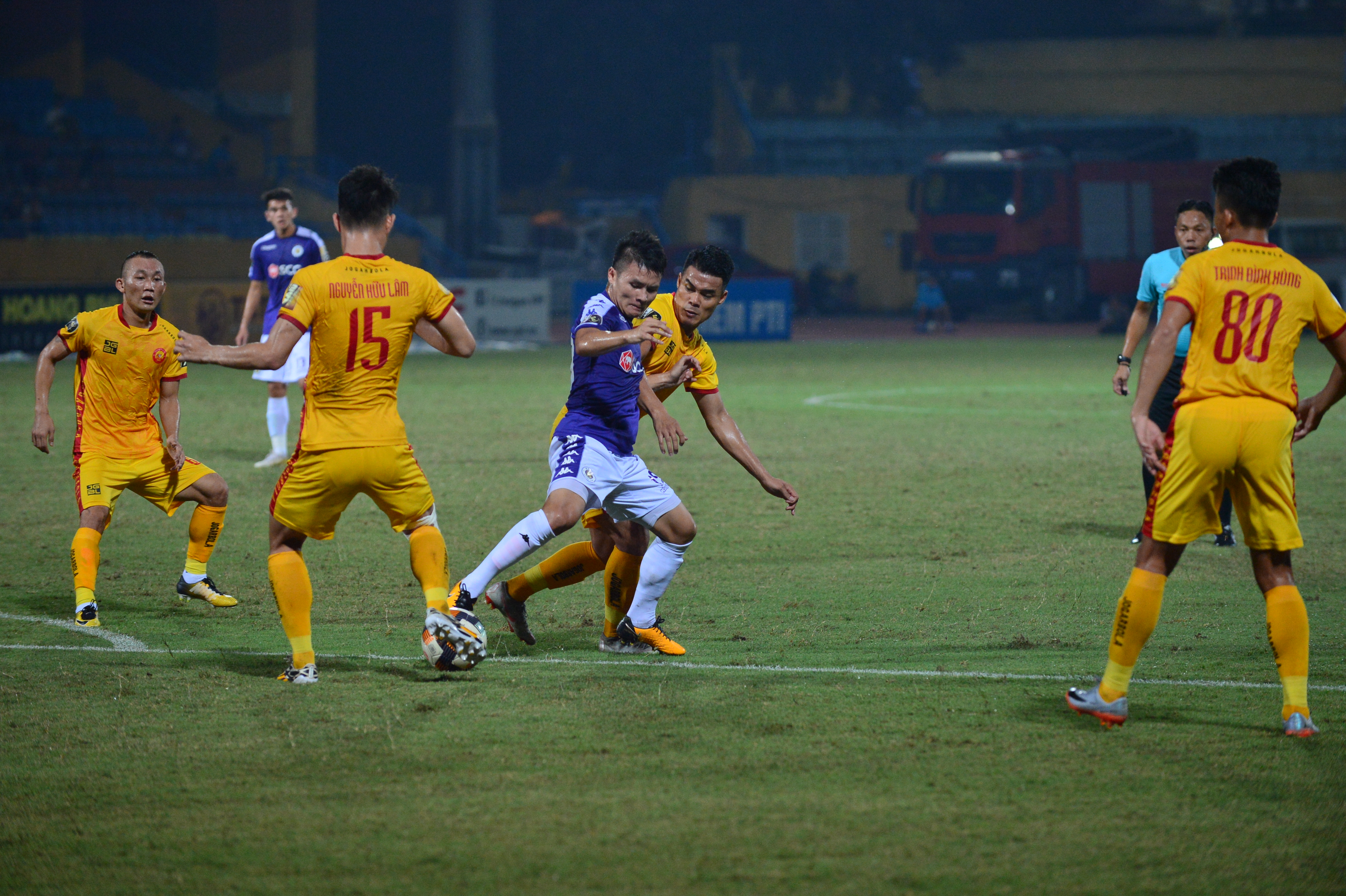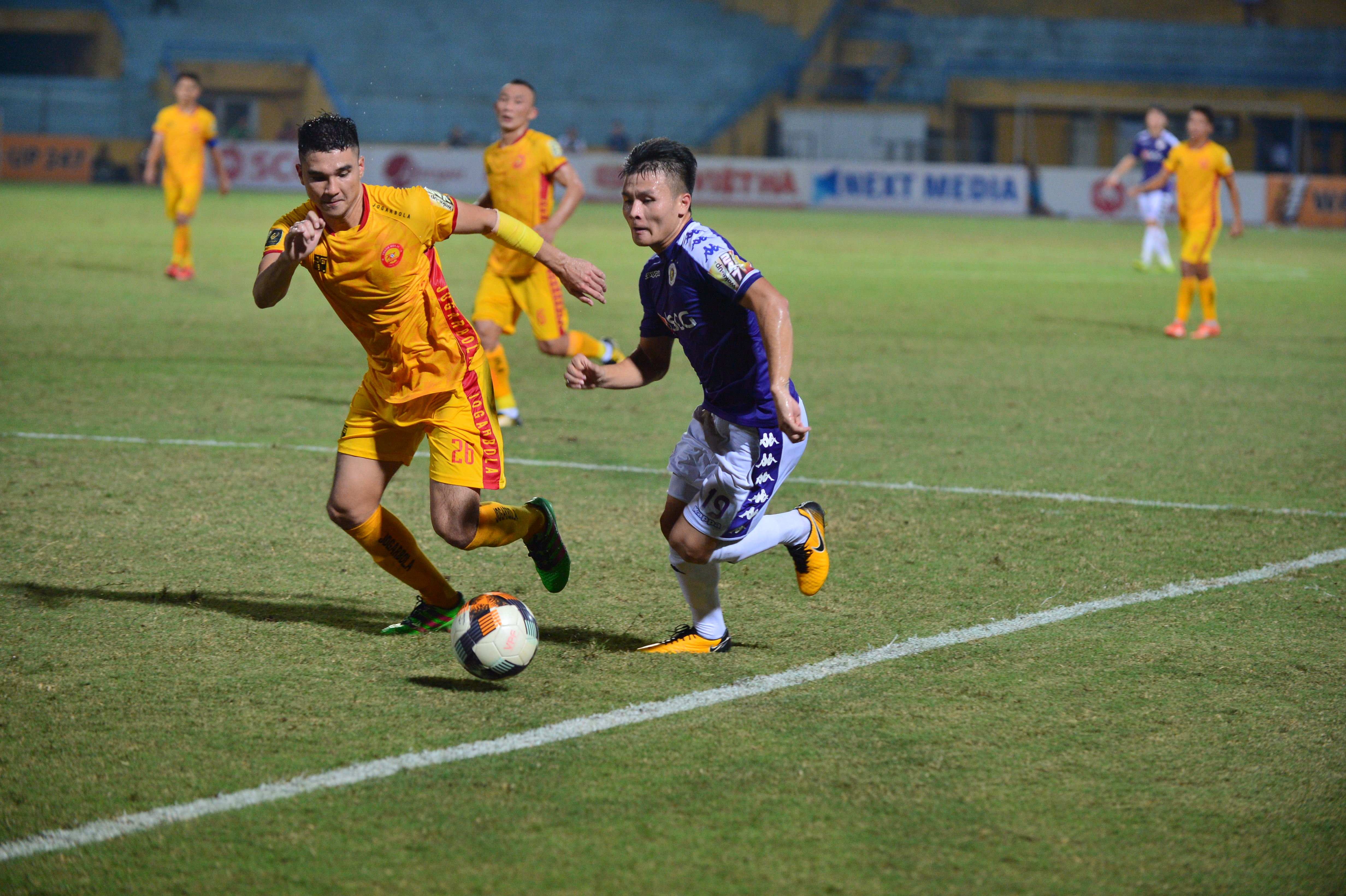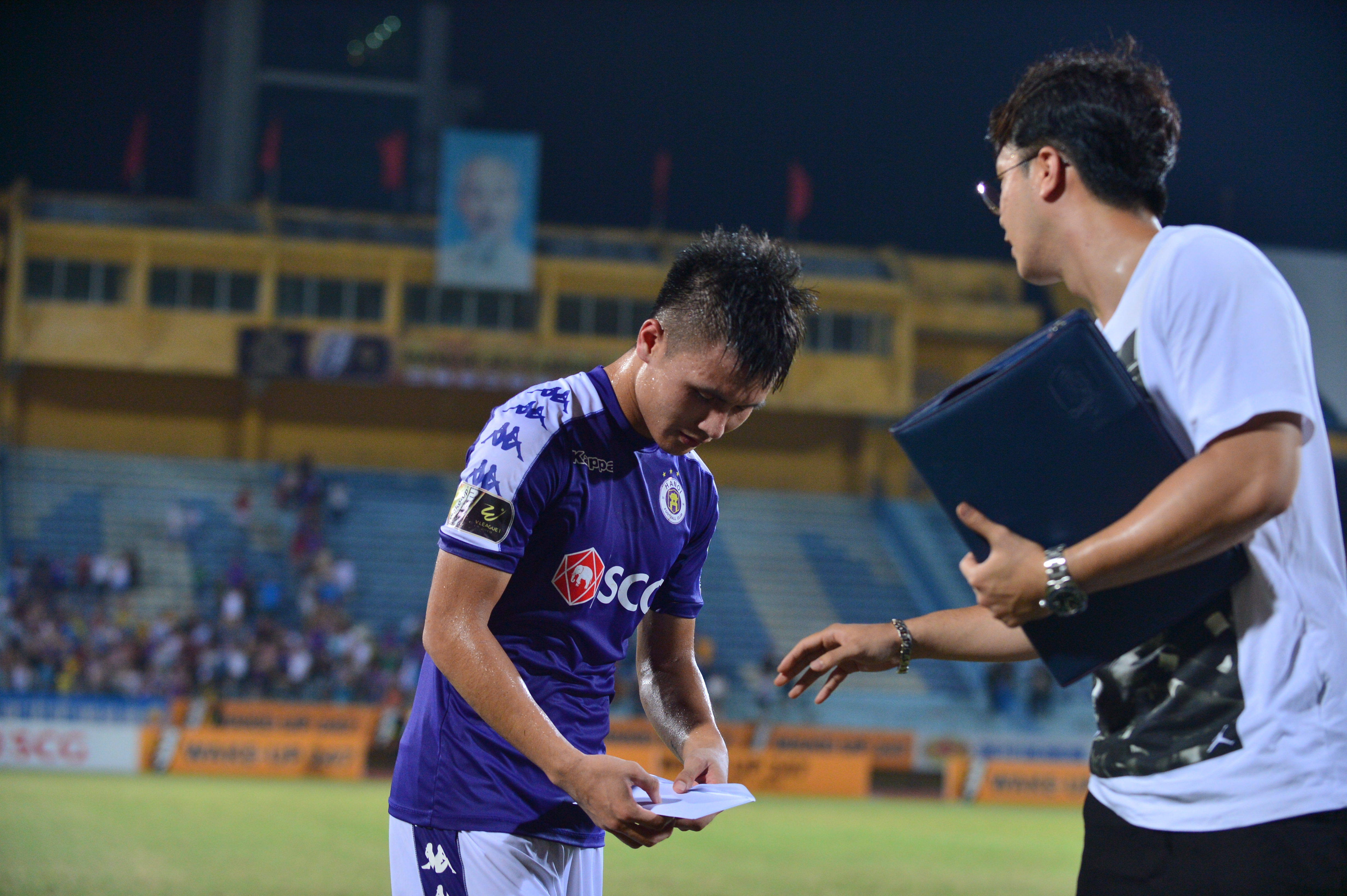Trận đấu giữa Hà Nội FC và CLB Thanh Hoá ở vòng 20 V.League 2019 diễn ra tối 11/8 Quang Hải đã nén nỗi đau thi đấu hết mình.