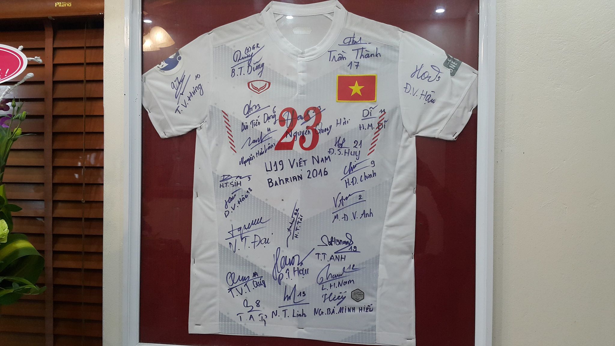 Trong nhà, gia đình trang trọng treo những tấm huy chương, bằng khen suốt thời gian thi đấu của Quang Hải. Không những thế, chiếc áo cùng chữ ký của tất cả các đồng đội được cầu thủ này giữ rất cẩn thận.
