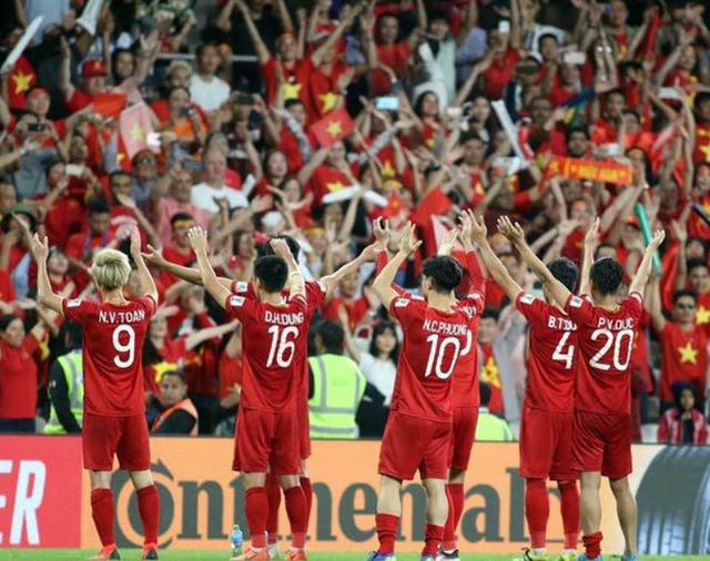 Đội tuyển Việt Nam tri ân các cổ động viên sau trận tứ kết Asian cup 2019. Ảnh: TL