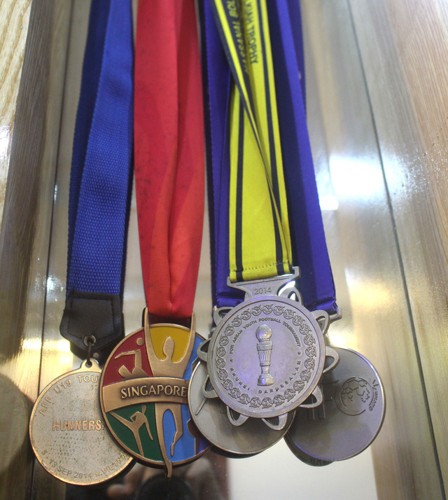 Những thành tích của tiền đạo quê Hải Dương trong căn phòng riêng. Ảnh: Đ.Tùy