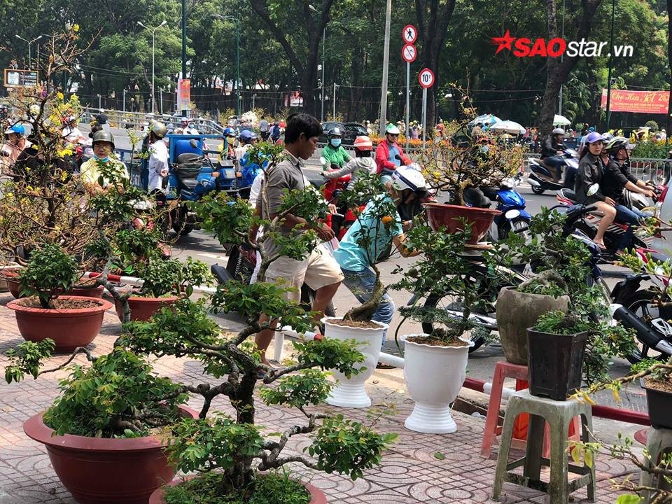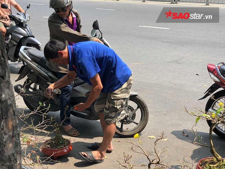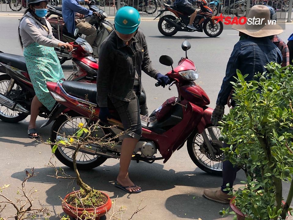 Tranh thủ lúc đi đường, nhiều người đứng lại mặc cả cây cảnh.