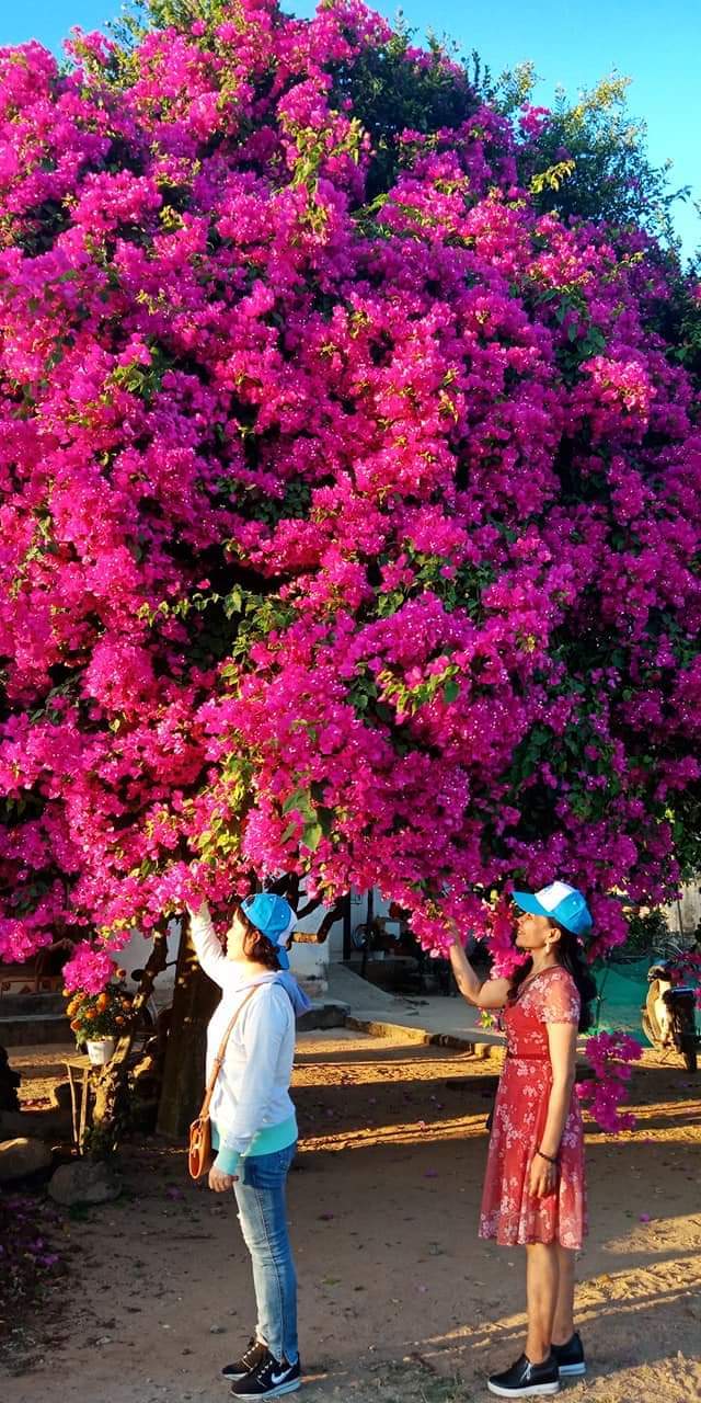 “Mình đi nhiều nhưng chưa thấy cây hoa giấy nào lại to và đẹp rực rỡ như vậy”, chị Hoa cười nói.