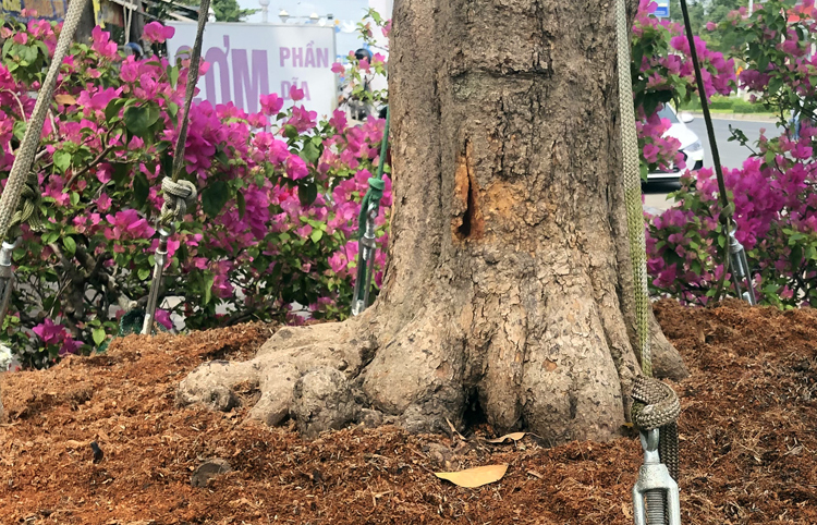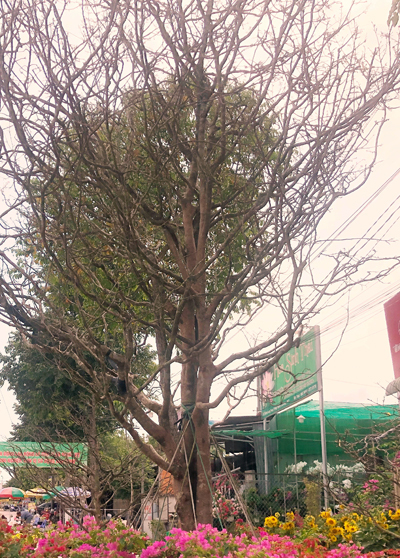 Để cây mai ra hoa đúng Tết, gia chủ phải thuê bốn người ngắt lá trong ba ngày. Sau đó mai được chở bằng xe tải đến cửa ngõ TP Cần Thơ trên đường Quang Trung, quận Cái Răng bày bán.