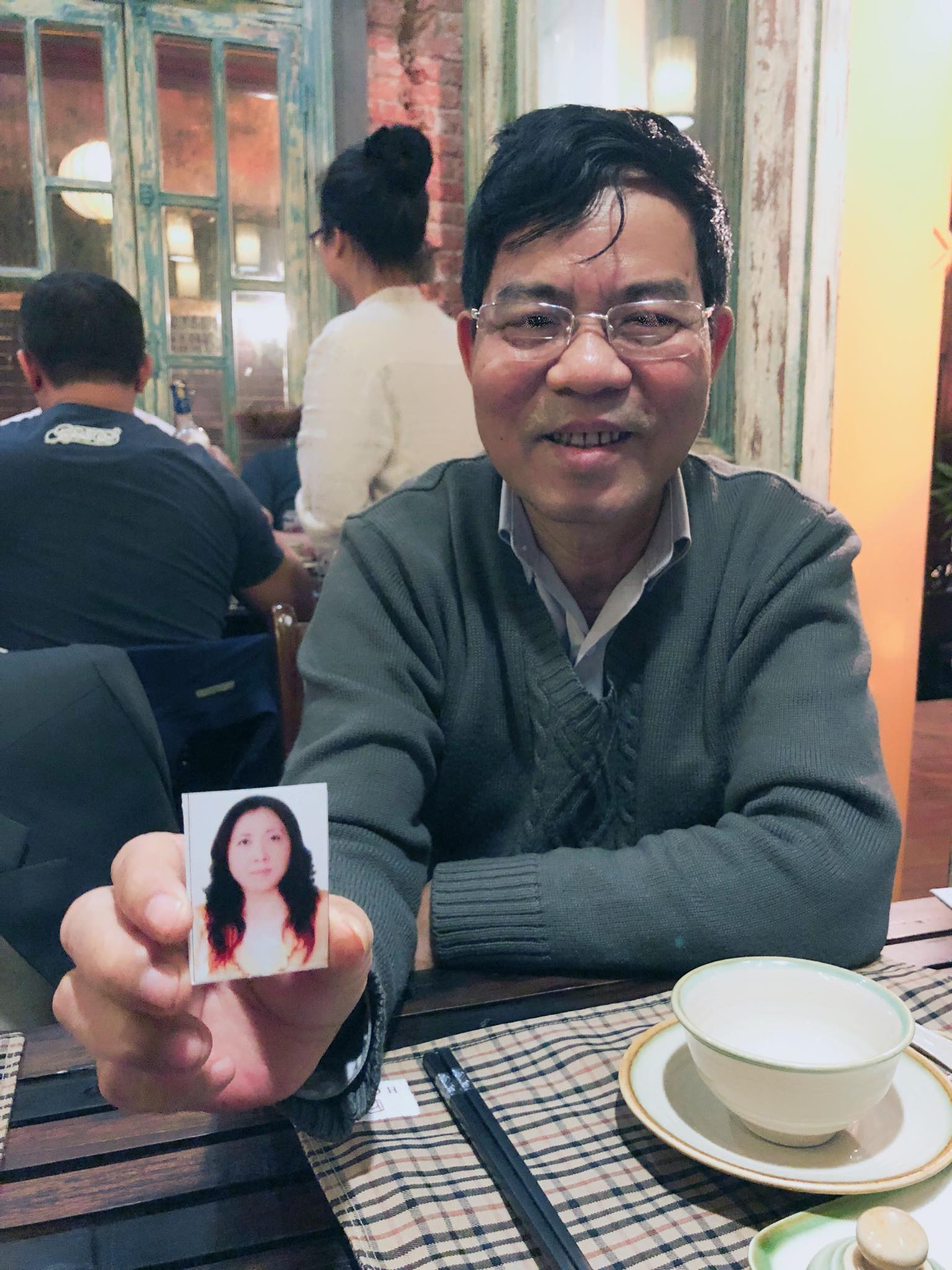 Bố ốm, đau lưng không nấu nướng bày vẽ được nhiều nên 3 bố con rủ nhau đi ăn tiệm. Bàn rộng chỉ có 3 người nên nhà hàng xếp 3 bộ bát đĩa. Đang ngồi chờ thì bố bảo: “Con bảo người ta để thêm một bộ bát đĩa ở đây cho mẹ ăn với”. Thế là đủ 4 suất ăn như ngày nào. Sau đó, bố lấy từ trong ví ra ảnh của mẹ để vào mâm bát.