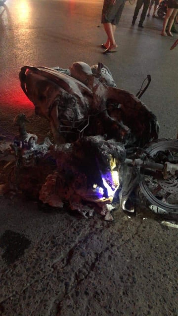 Một chiếc xe máy bị cháy rụi sau vụ việc.