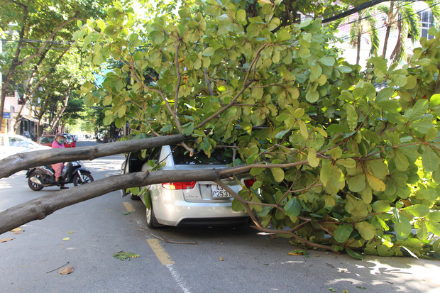 Cây xanh bất ngờ bật gốc đè chắn ngang ô tô. (Ảnh: Vietnamnet).