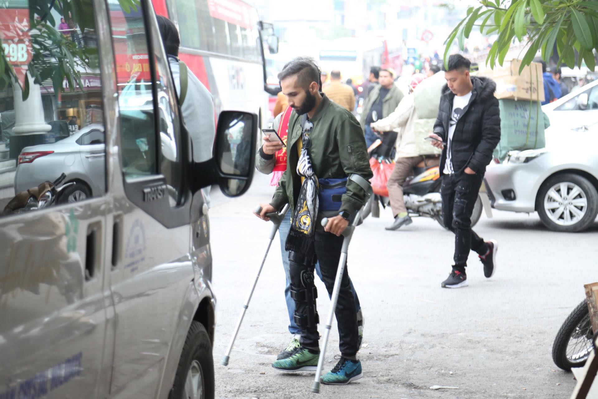 Một CĐV chống nạng sang Việt Nam cổ vũ bóng đá.