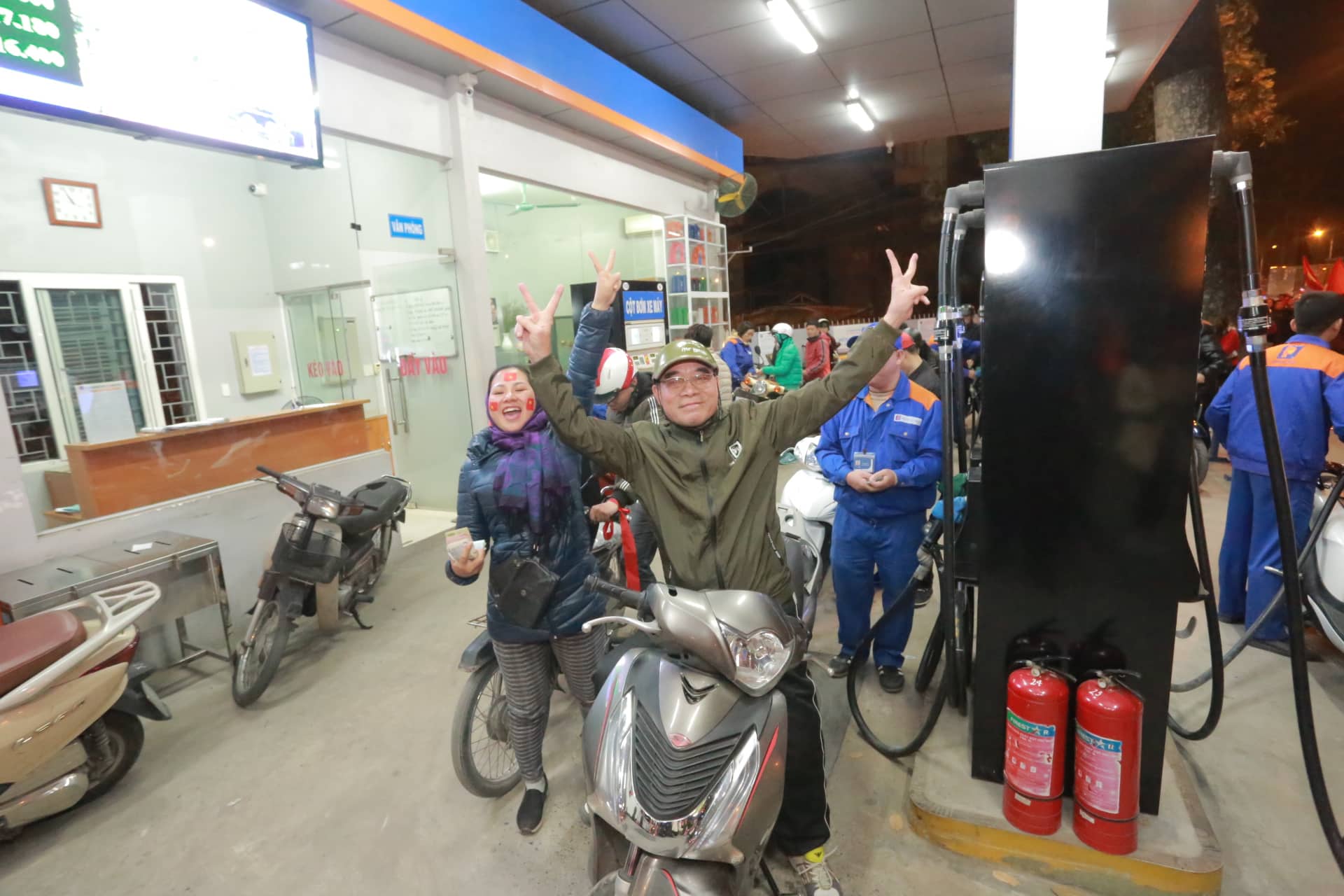 Tham gia đi bão và vì đang là ngày nghỉ nên có vẻ như nhiều CĐV sẵn sàng thức trắng đêm để mừng chiến thắng của đội bóng áo đỏ. Trước khi có thể quẩy tới bến, nhiều CĐV đã tìm đến các cây xăng để sạc năng lượng cho phương tiện của mình. Điều này đã khiến nhiều cây xăng lâm vào tình trạng quá tải.