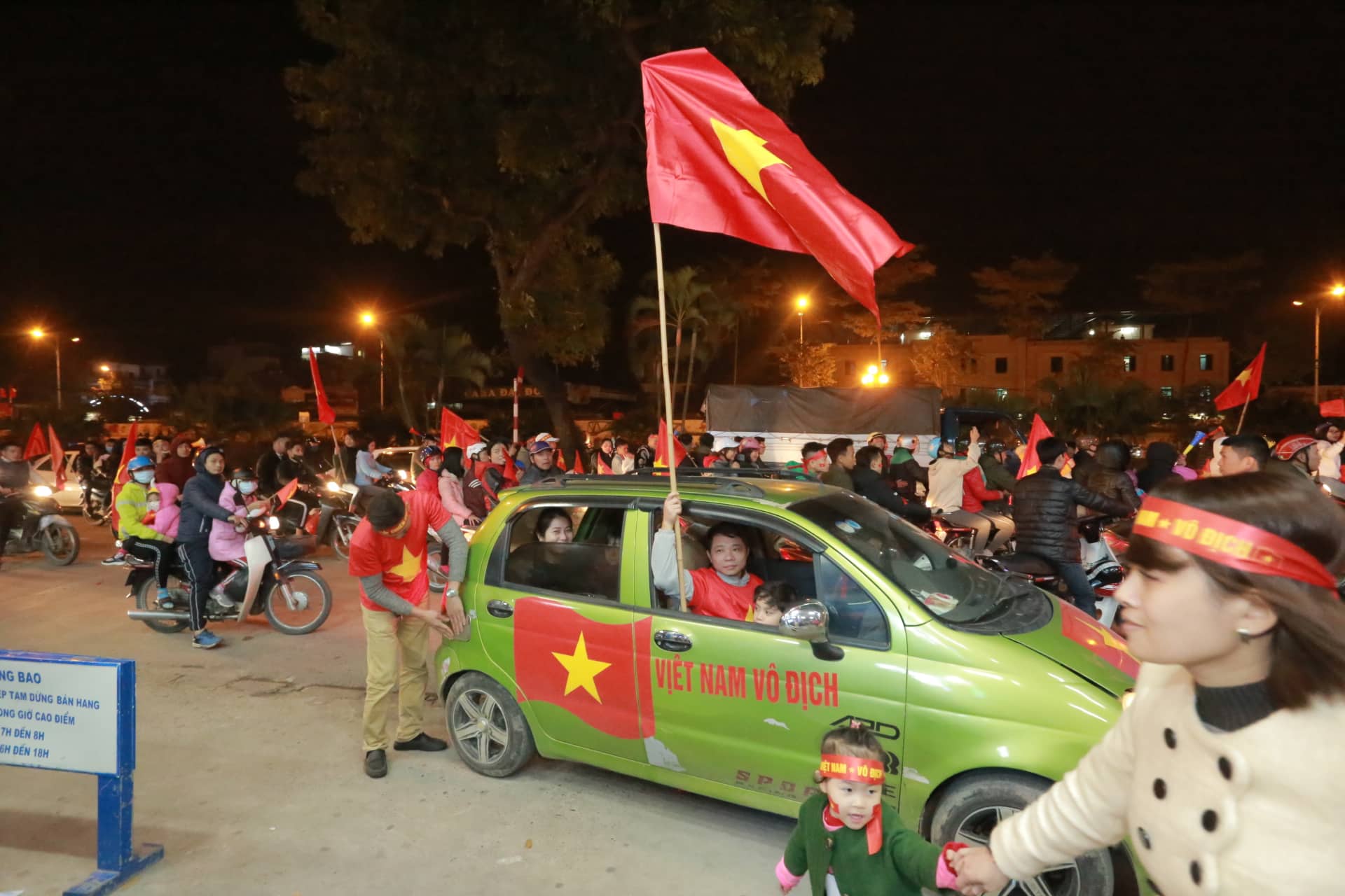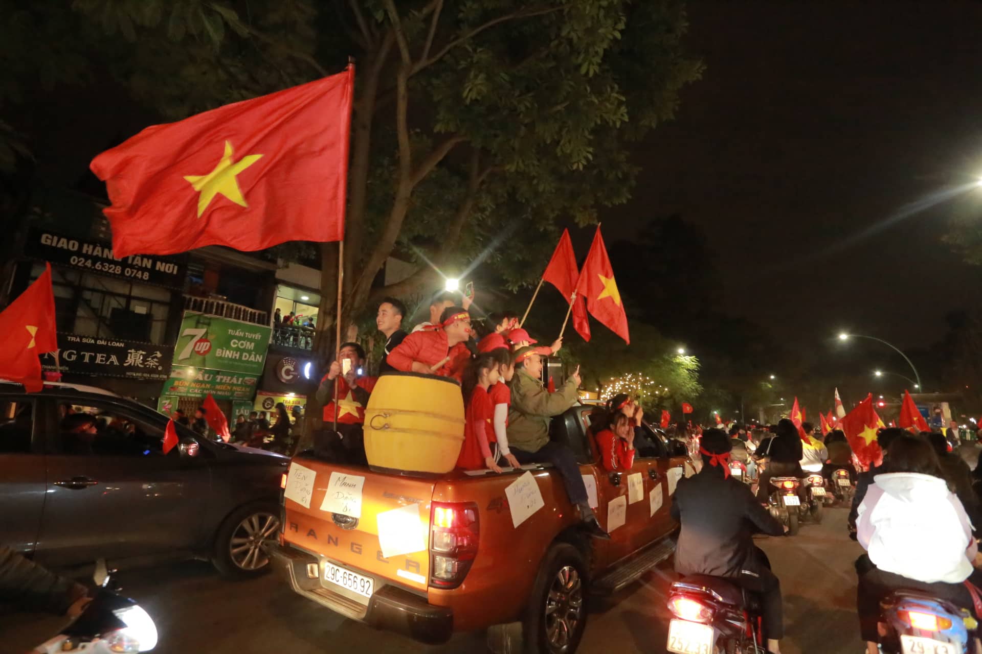 Những chiếc ô tô trang trí Quốc kỳ diễu hành ăn mừng chiến thắng.