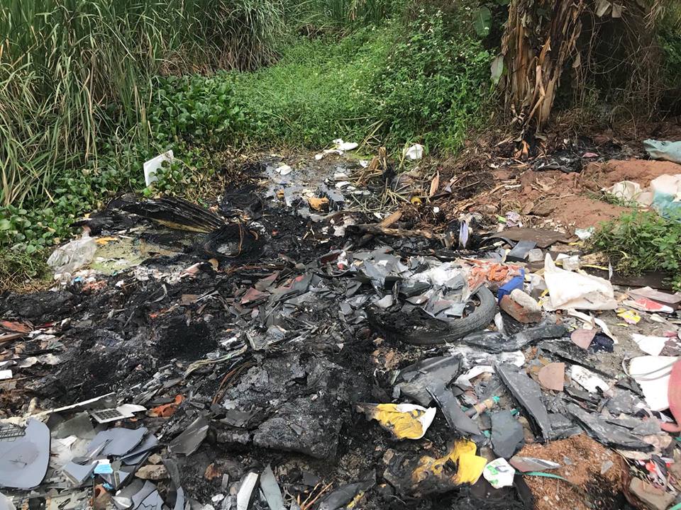 Vị trí bãi rác nơi T. bị nghi phạm phi tang.