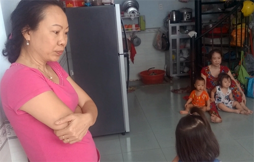 Từ miền Trung vào TP HCM, anh Khánh làm ngành xây dựng, còn vợ là công nhân. Các cơ sở mầm non công lập không nhận bé dưới 12 tháng nên họ phải gửi con gái ở chỗ bà Thu từ hơn một năm trước.