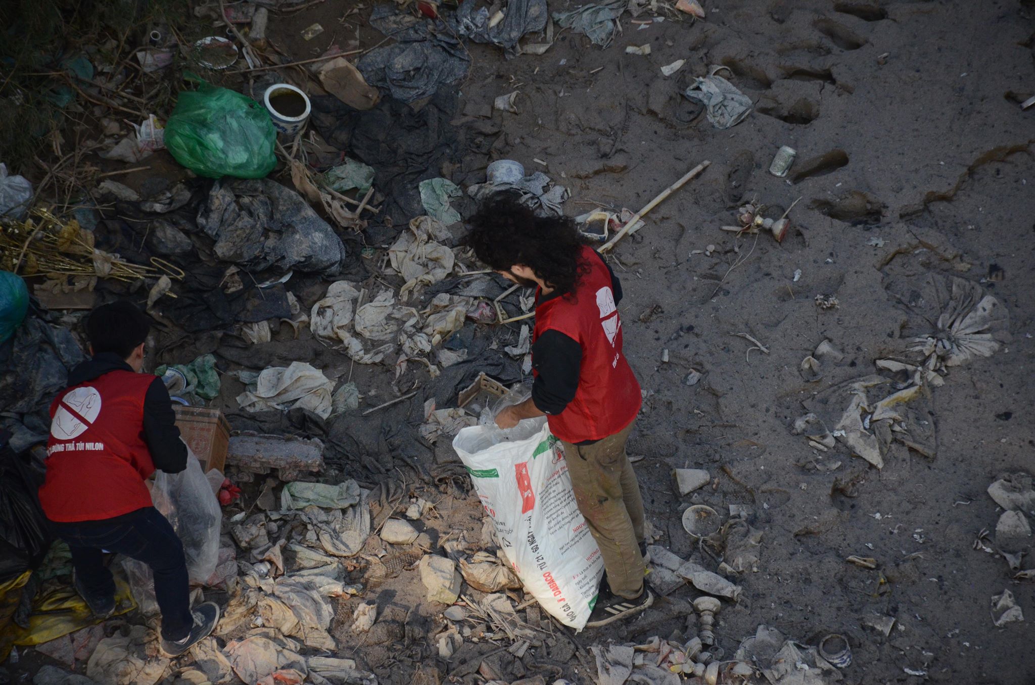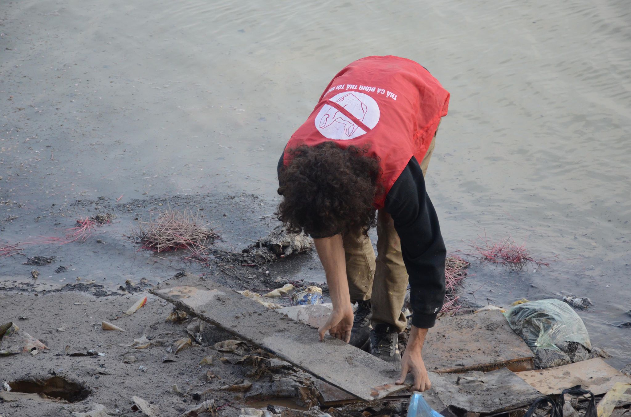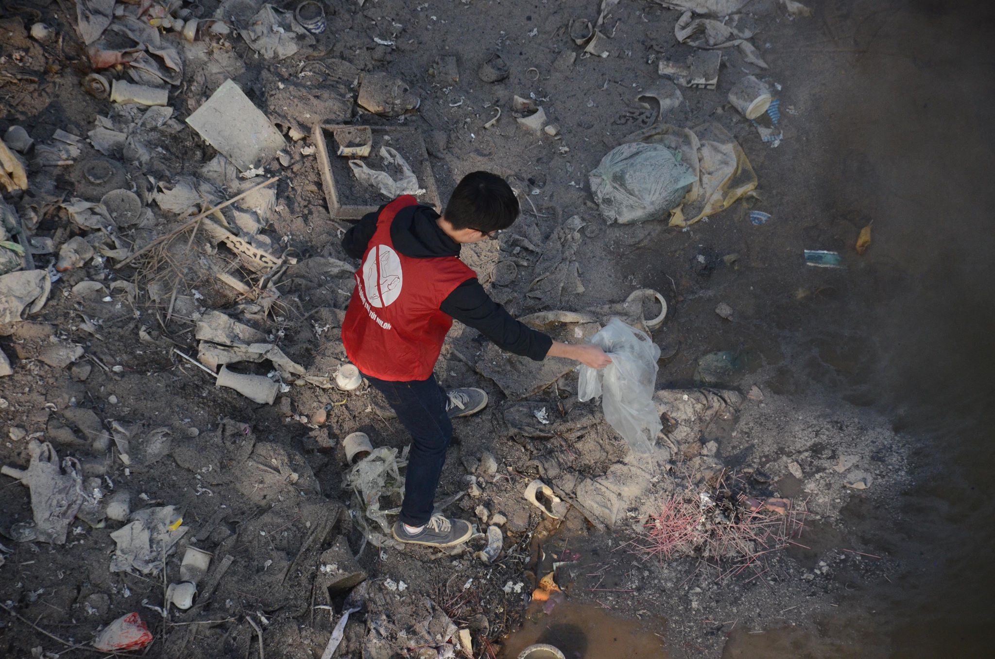 Anh tay trần cùng những thanh niên tình nguyện nhặt từng bát hương, bàn thờ ai đó vô tình vứt xuống sông hay nhặt nhạnh những chiếc túi nilon, bao tải rác.