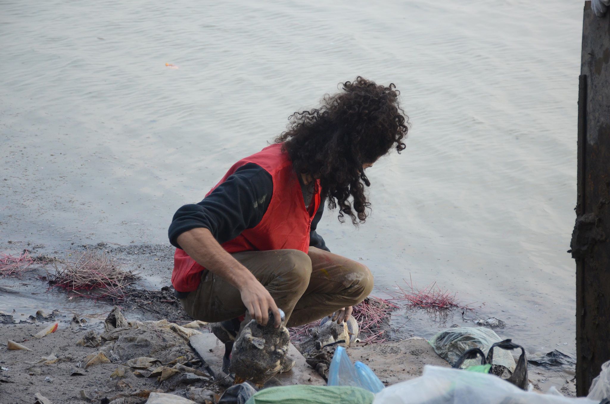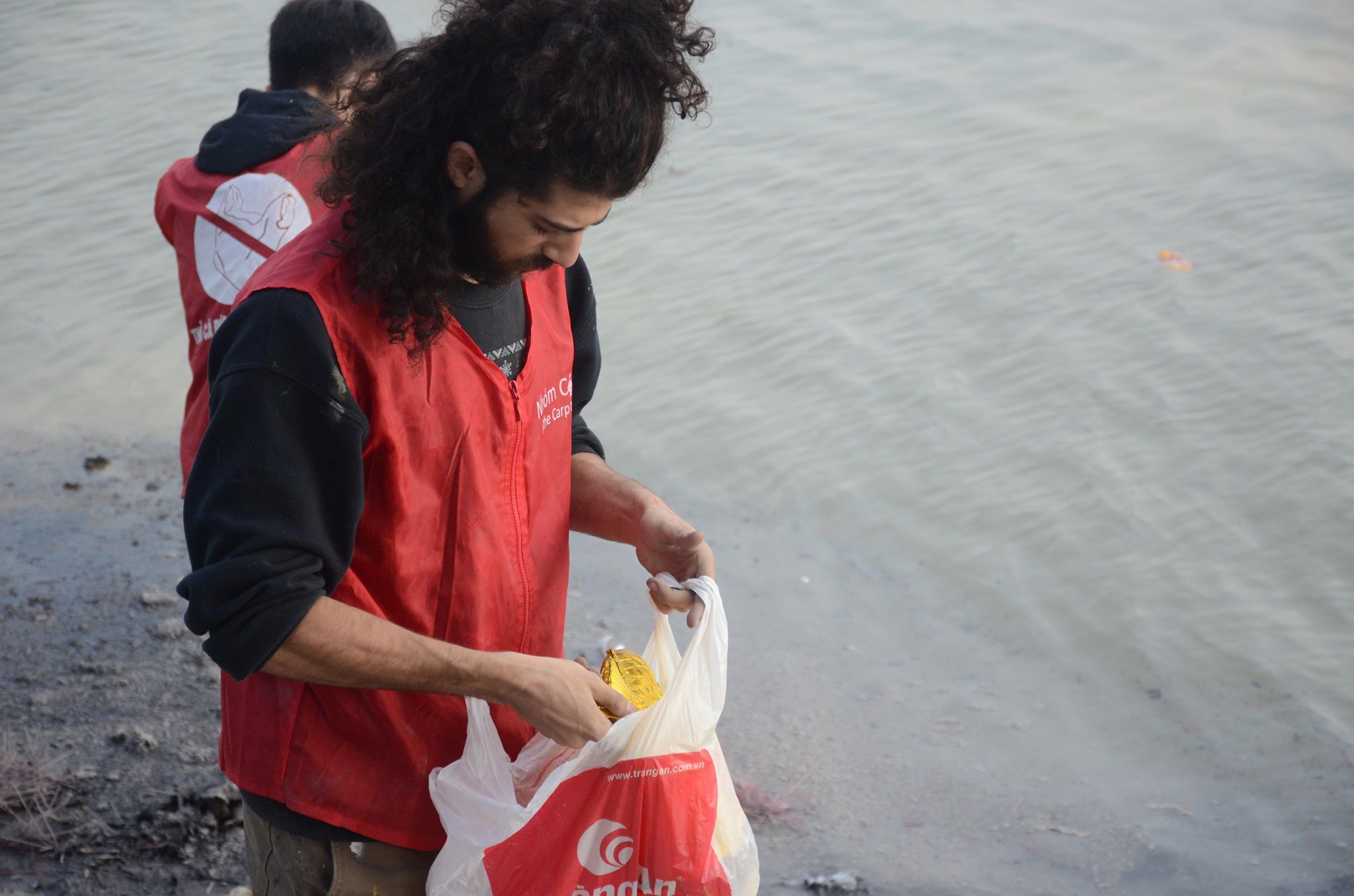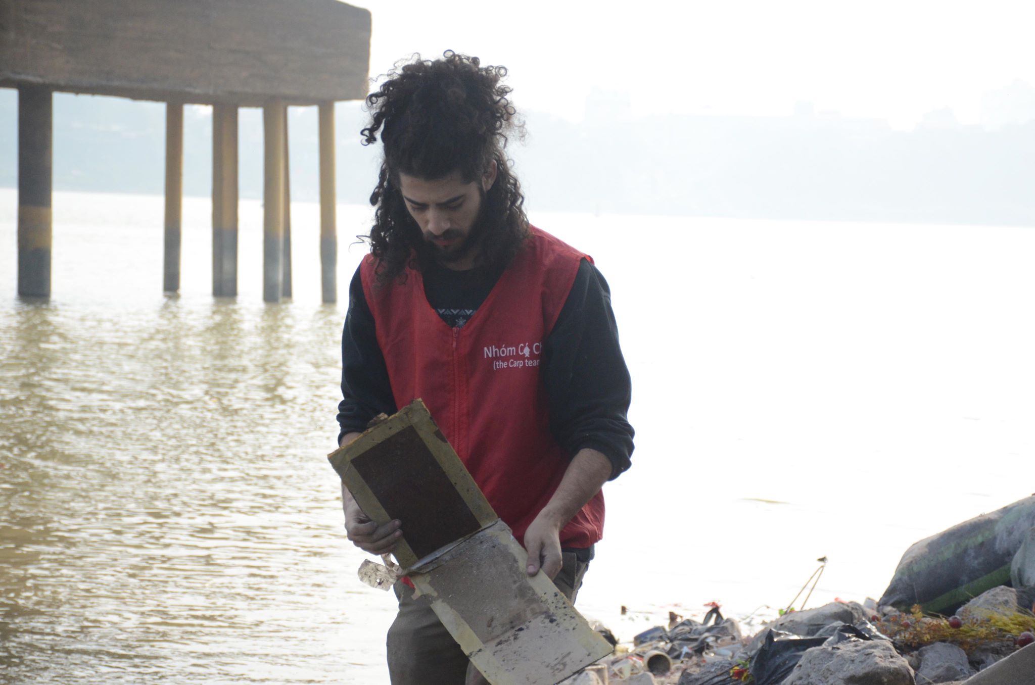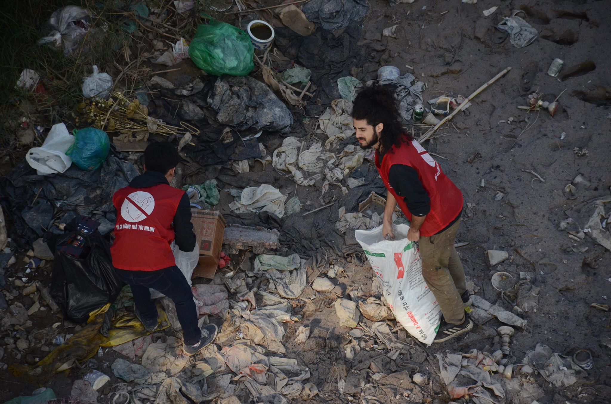 Anh tay trần cùng những thanh niên tình nguyện nhặt từng bát hương, bàn thờ ai đó vô tình vứt xuống sông hay nhặt nhạnh những chiếc túi nilon, bao tải rác.