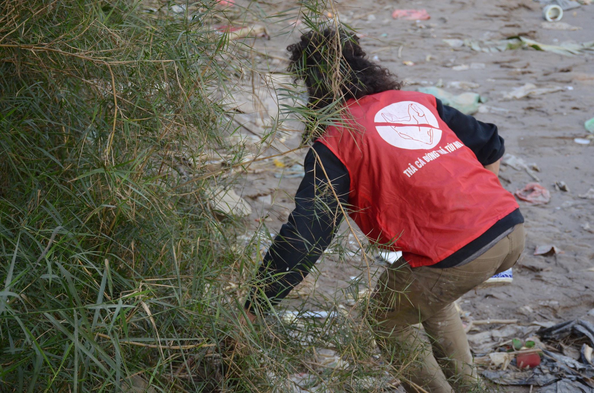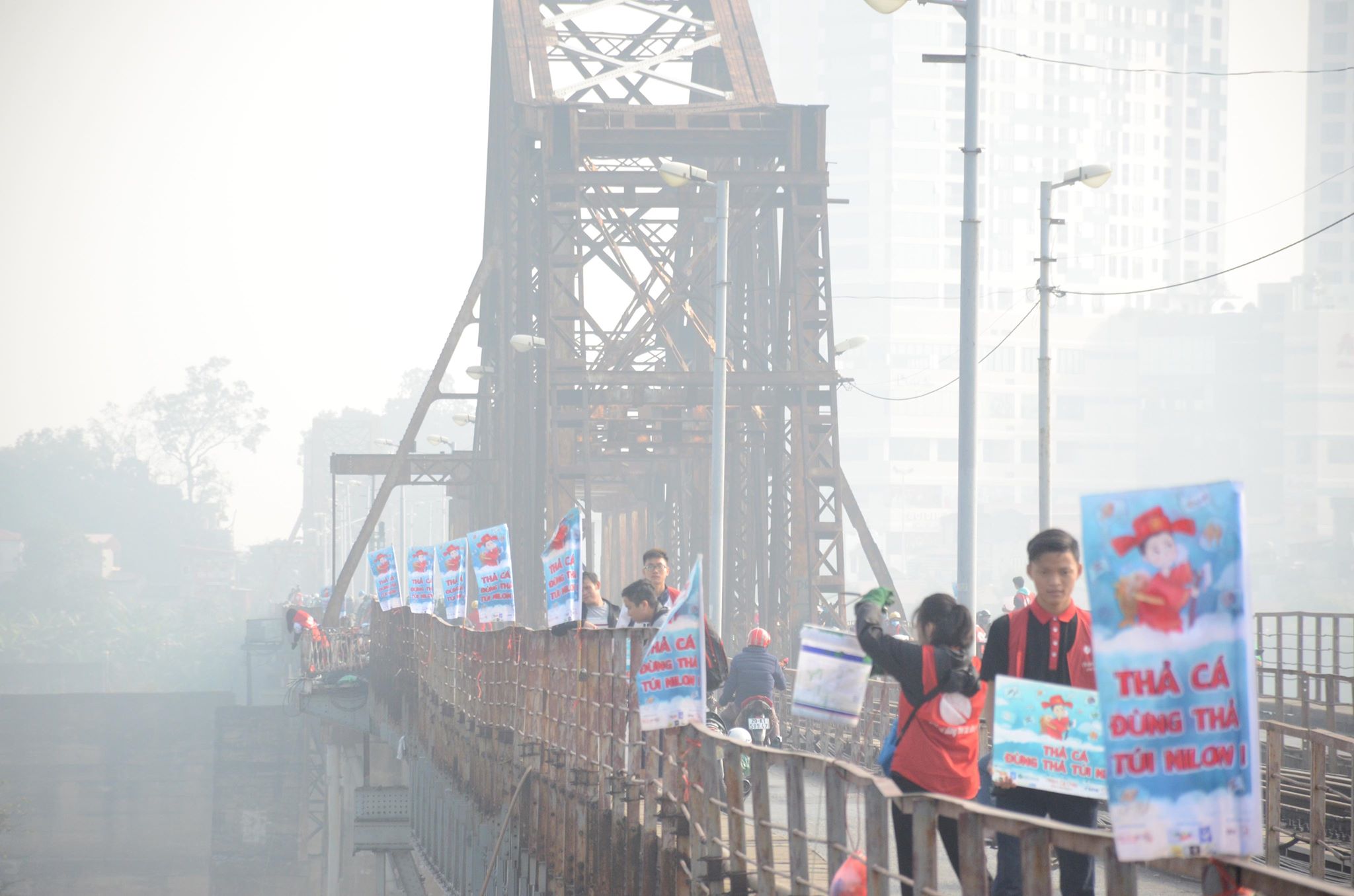 Ngay từ sáng sớm Scott Matt cặm cụi dưới chân cầu Long Biên. Anh khoác trên mình chiếc áo đỏ với thông điệp: “Thả cá đừng thả túi nilon”. Tuy sinh ra và lớn lên tại Mỹ nhưng Scott Matt lại có tình yêu đặc biệt với đất nước Việt Nam.