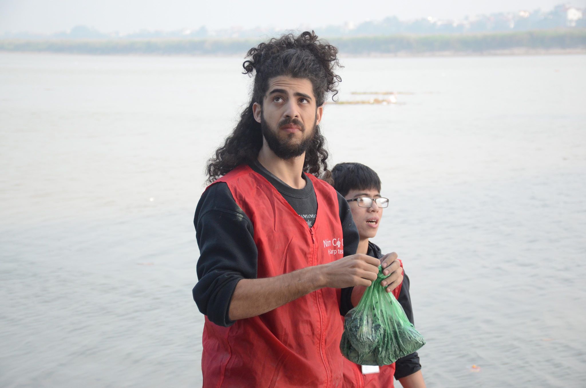 Chàng trai Tây cặm cụi nhặt rác thải dưới chân cầu Long Biên ngày tiễn ông Công ông Táo về trời