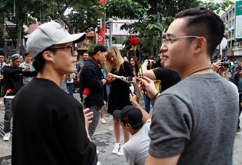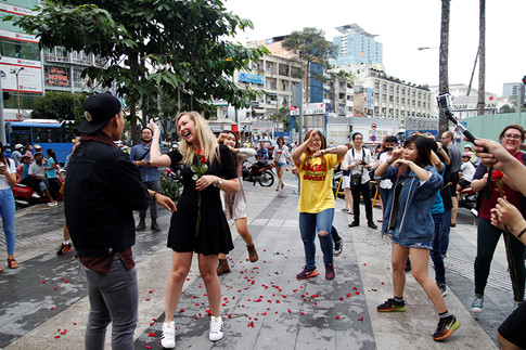 Vào chiều 15.1, màn nhảy cầu hôn thu hút nhiều người dừng lại xem ở trung tâm Sài Gòn.
