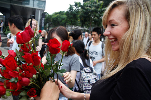 Nhân vật chính trong màn cầu hôn này là anh chàng Lê Khánh Luân (22 tuổi, ngụ Q.10 TP.HCM) và cô bạn gái Rebbeca Am Lambton (quốc tịch Anh). Hiện tại Luân đang làm tại một quán bar còn Rebbeca đang là một giáo viên tiểu học của một trường quốc tế.