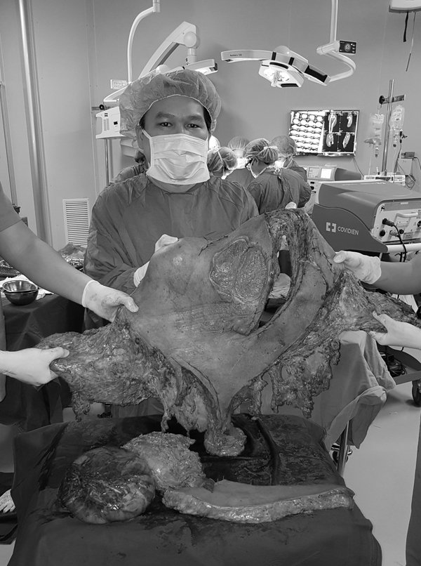 Kíp phẫu thuật huy động hơn 10 phẫu thuật viên chia thành 3 kíp và 20 nhân viên, bác sĩ khu mổ và gây mê hồi sức. Sau hơn 8 giờ phẫu thuật, ekip đã cắt bỏ toàn bộ khối u vùng lưng và mông với trọng khoảng 23kg. Tổng lượng máu phải truyền cho bệnh nhân là hơn 5 lít.
