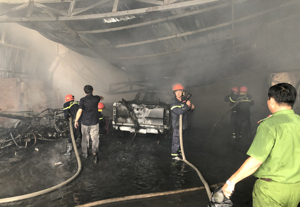Tại hiện trường, đám cháy đã thiêu rụi 1 xe ô tô, cháy xém 3 xe tải cùng một số xe máy đậu trong bãi đỗ và sập một phần mái che của bãi xe. Ước tính thiệt hại gần 1 tỷ đồng.