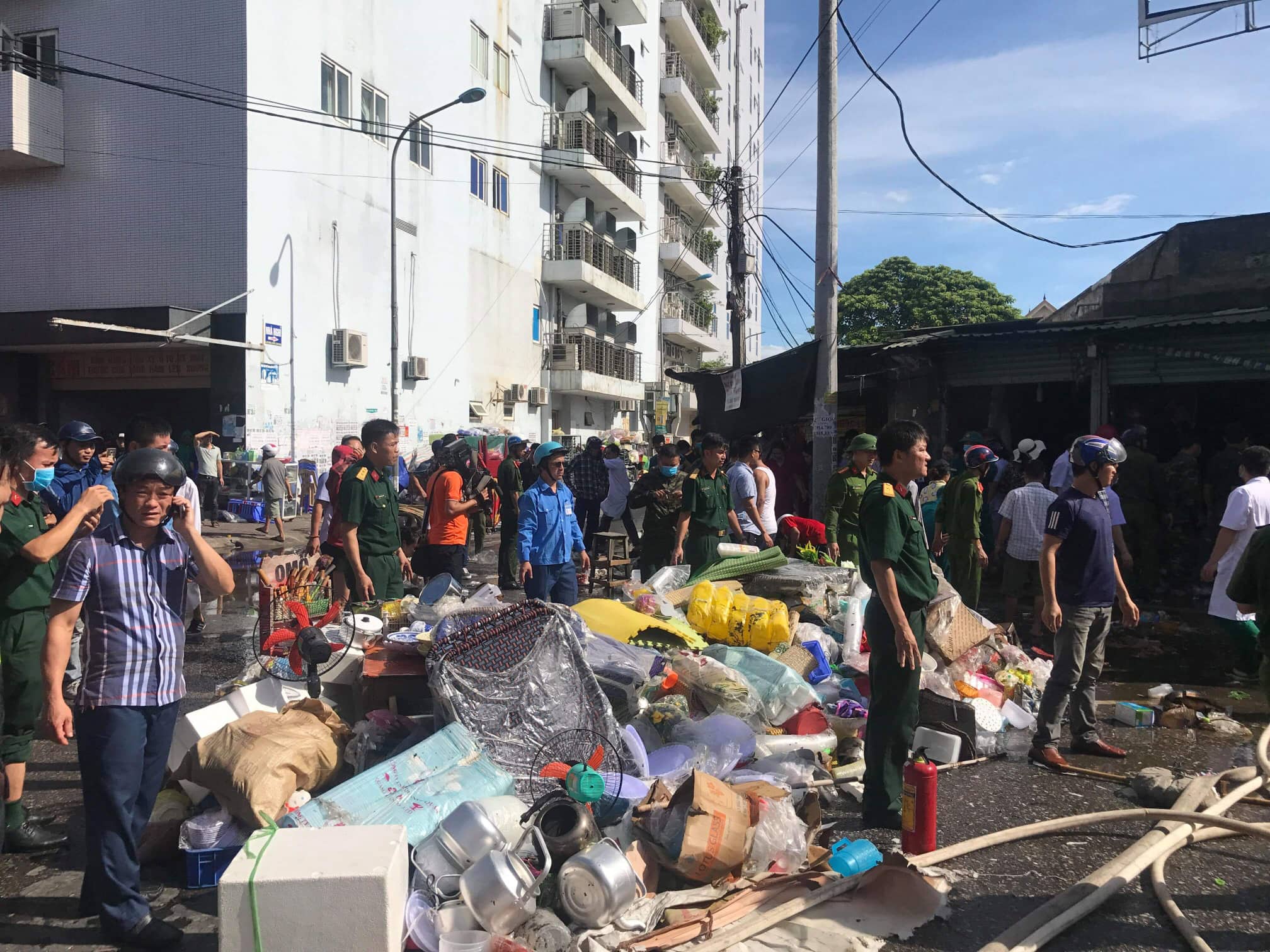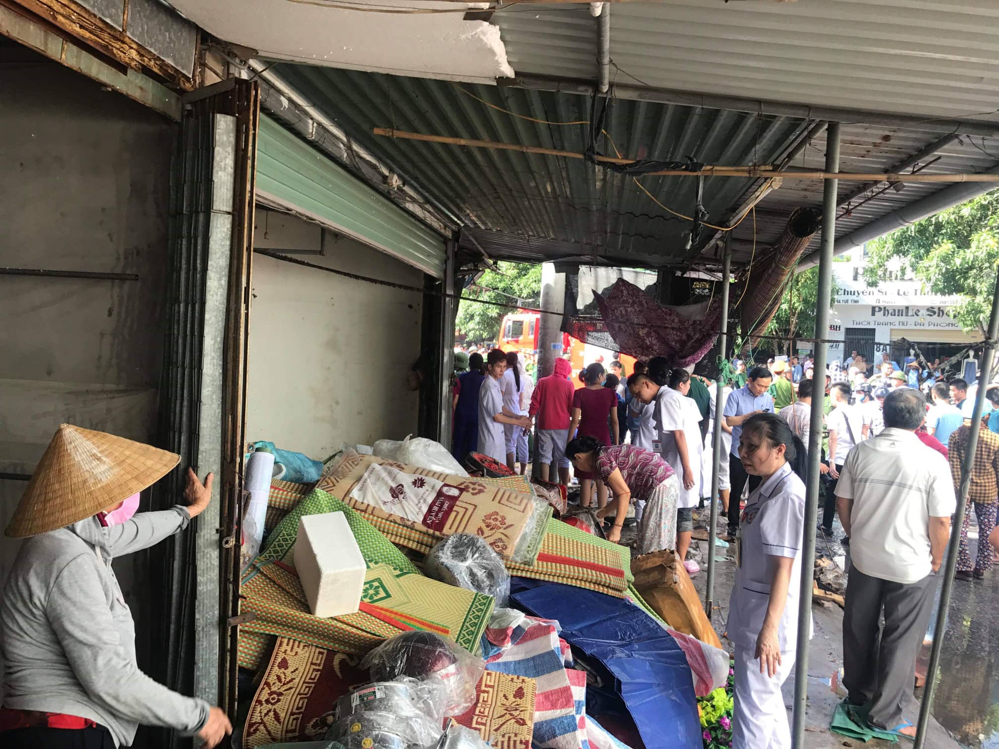 Vào thời điểm này thời tiết nắng nóng, tại khu chợ có nhiều vật liệu dễ cháy nên ngọn lửa nhanh chóng bùng phát dữ dội. Vì vậy, một mặt mọi người gọi lực lượng PCCC, đồng thời chạy vào đưa hàng hóa ra ngoài. Hàng trăm người dân địa phương cũng đã tới hỗ trợ các tiểu thương.