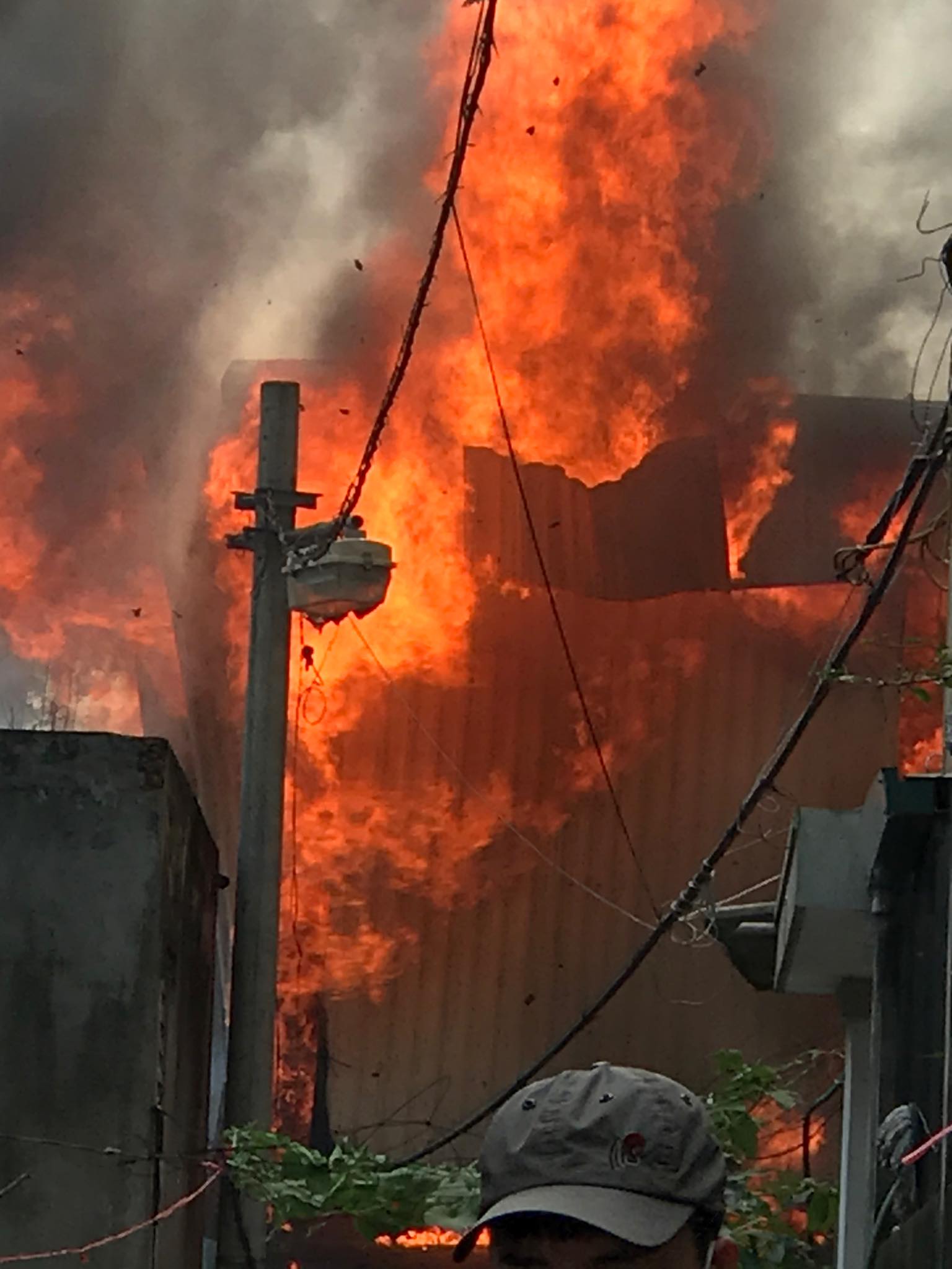 Sau ít phút, ngọn lửa bốc cháy ngùn ngụt và lan ra sung quanh và đường dây điện khiến toàn khu vực bị mất điện. Nhiều người hàng xóm nhanh chóng bỏ chạy ra ngoài vì khói bủa vây và đề phòng bị ảnh hưởng. Có người vội bế thú cưng ra ngoài thoát nạn.