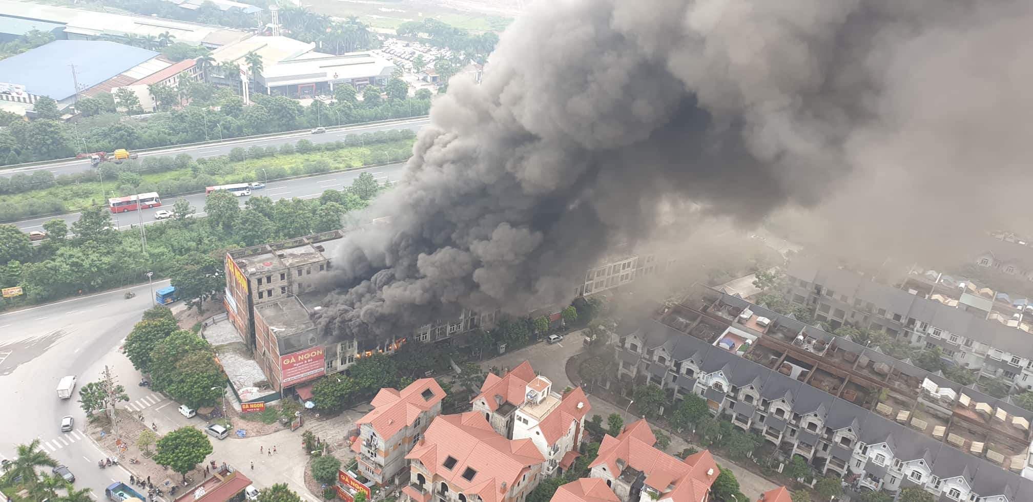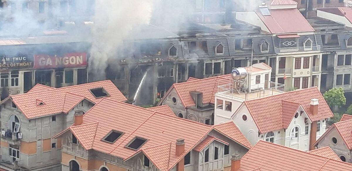 Vụ cháy xảy ra vào khoảng gần 9h sáng 16/7, tại khu biệt thự liền kể ở Thiên Đường Bảo Sơn, huyện Hoài Đức, Hà Nội, đám cháy lớn kèm cột khói cao hàng trăm mét.