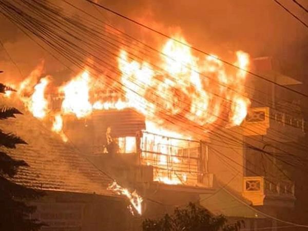 Đám cháy lớn tại ngôi nhà 3 tầng ở Sa Pa. (Ảnh: Báo Lào Cai).