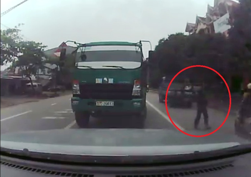 Bất ngờ, tài xế xe tải còn mở cửa xe xuống đường đứng một lúc rồi mới chịu lên xe đi tiếp.