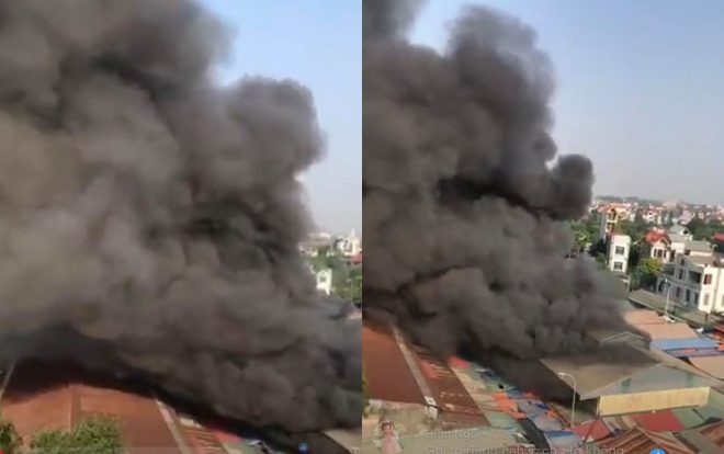 Vụ cháy kèm theo khói lớn bốc ra nghi ngút tại chợ Tó.
