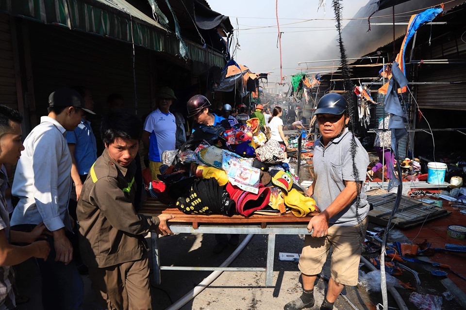 Nhiều tiểu thương hốt hoảng ôm hàng tháo chạy ra ngoài.