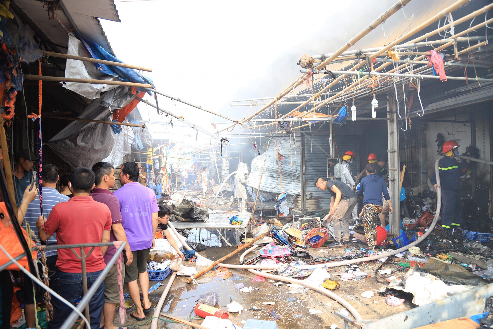 Hiện các lực lượng đang phối hợp cùng các tiểu thương dọn dẹp hiện trường, thống kê thiệt hại và điều tra làm rõ nguyên nhân gây cháy.