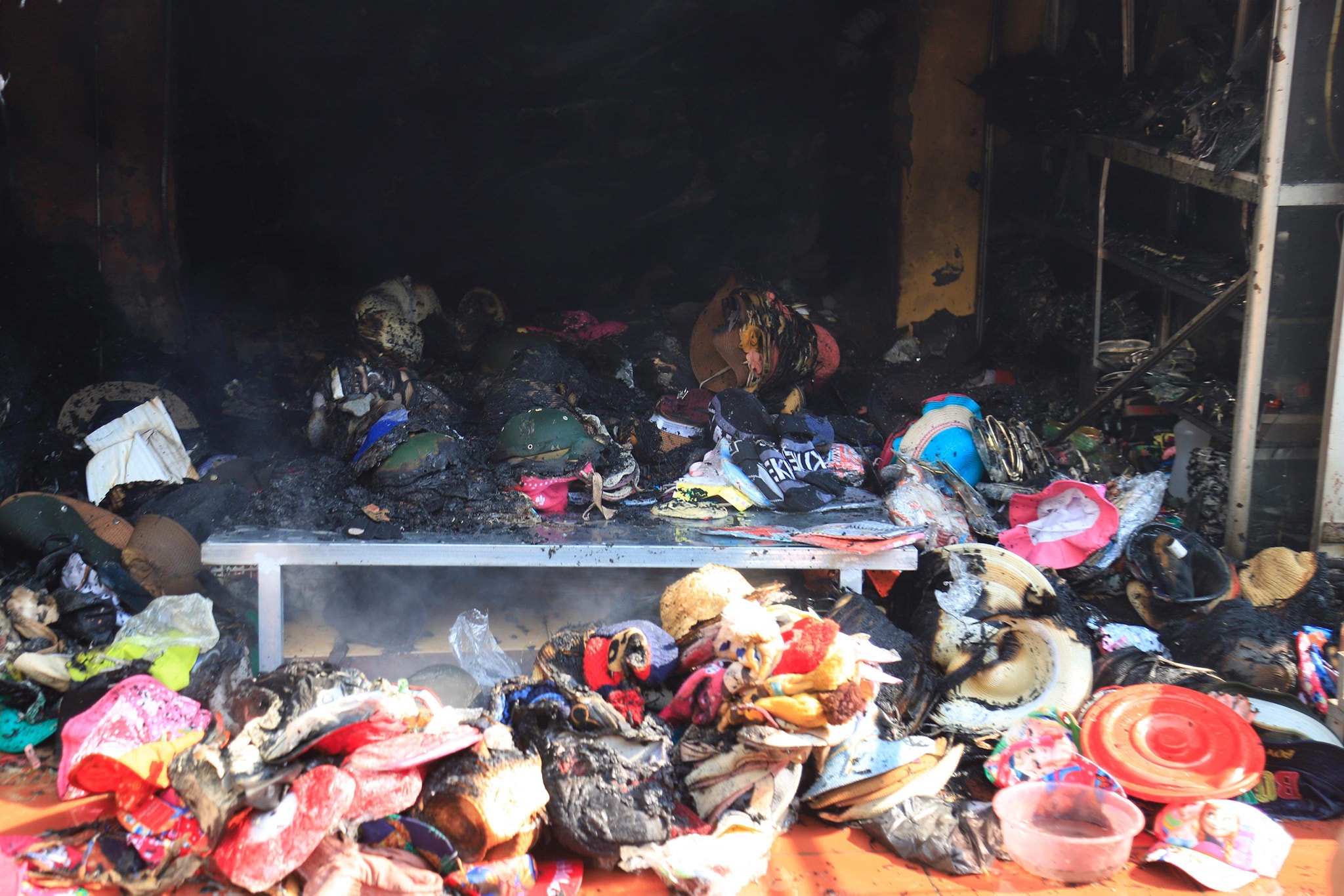 Vụ cháy khiến một số gian hàng bị thiêu rụi.