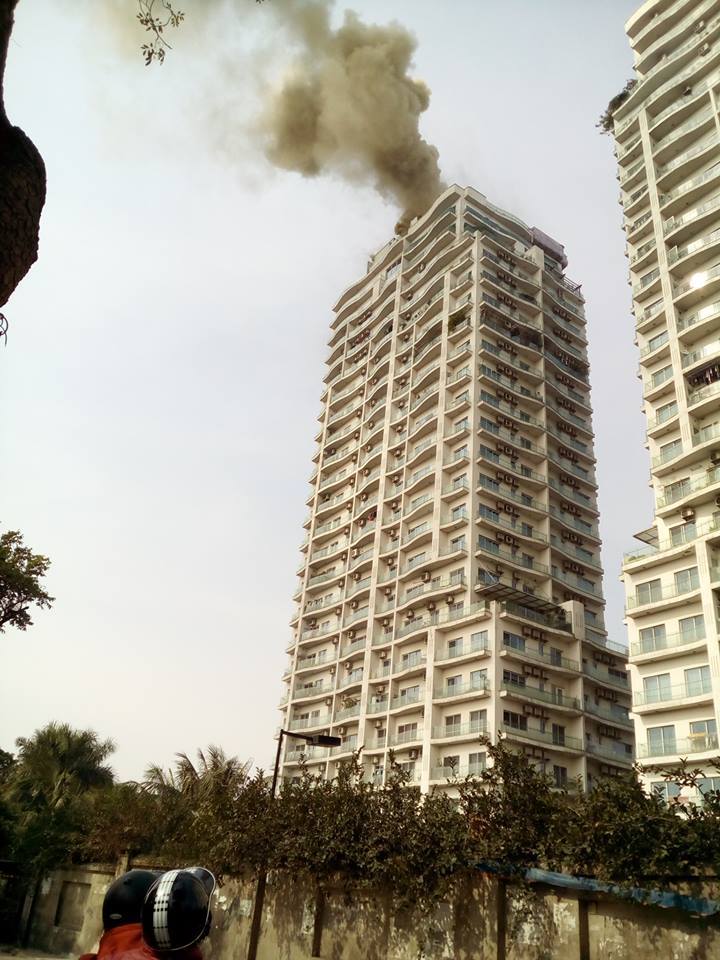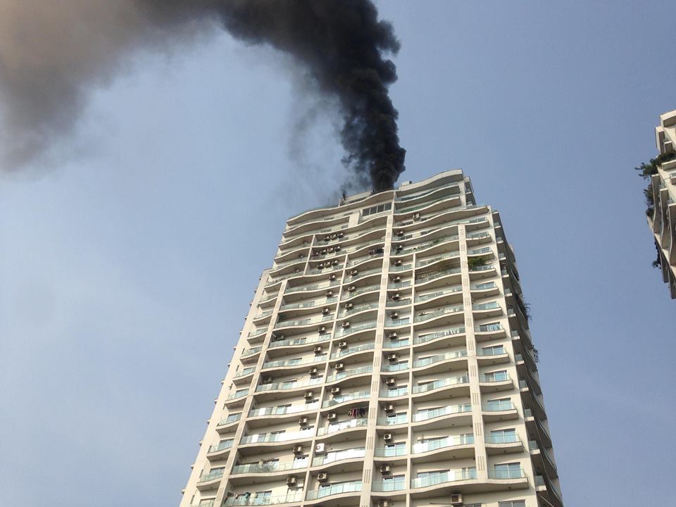 Cột khói đen bốc ra từ tầng cao nhất của tòa chung cư.