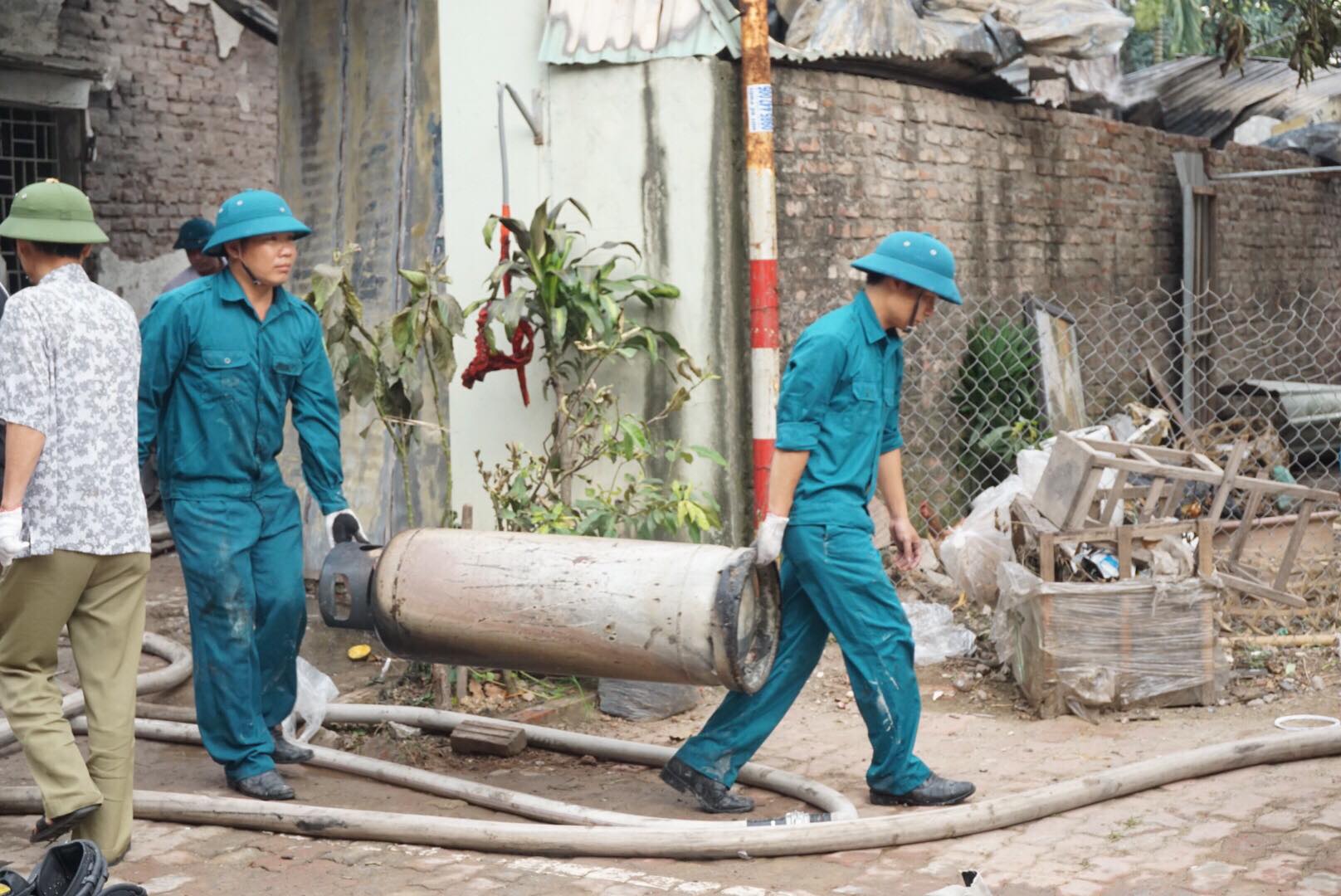 Lực lượng chức năng đưa bình ga có nguy cơ phát nổ ra ngoài.