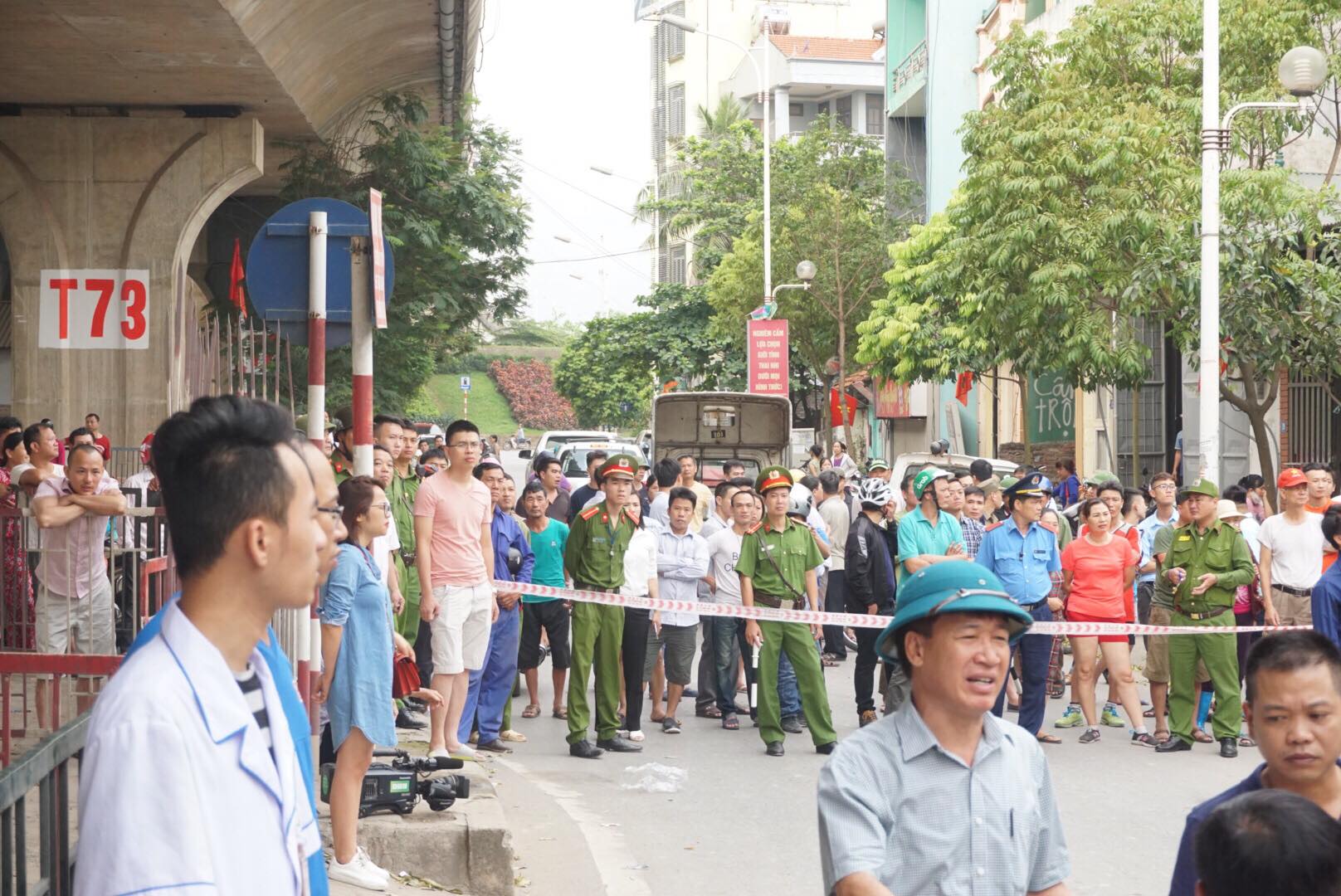 Người dân hiếu kỳ kéo đến theo dõi vụ việc.