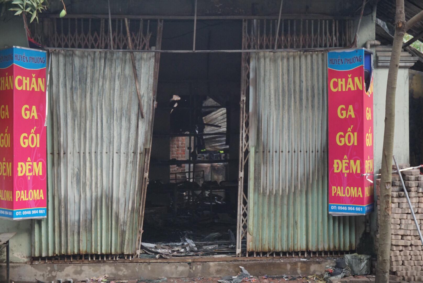 Ki-ốt bán chăn ga gối đệm bị thiêu rụi.