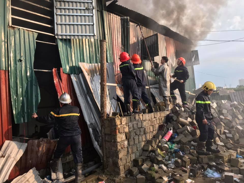 Tới thời điểm 17h30 đám cháy cơ bản đã được khống chế. Hiện, chưa có thống kê về thiệt hại. Một số đồ đạc quần áo của công nhân được đưa ra ngoài.