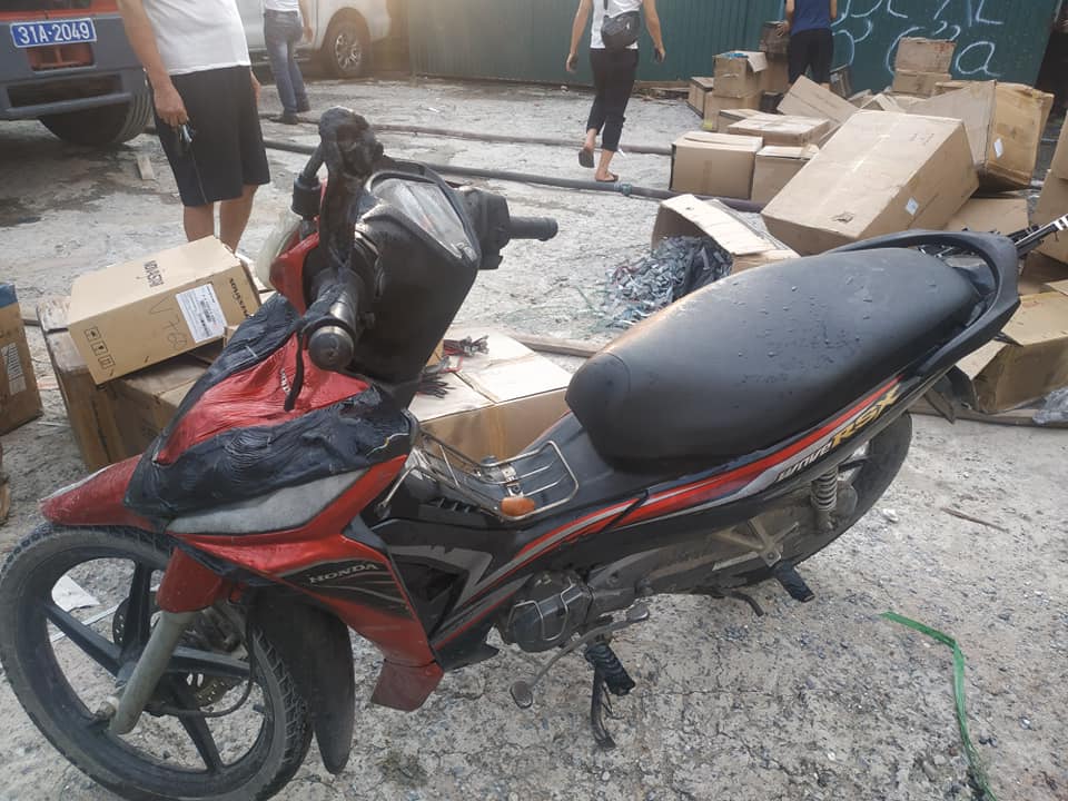 Một chiếc xe máy bị cháy xém.