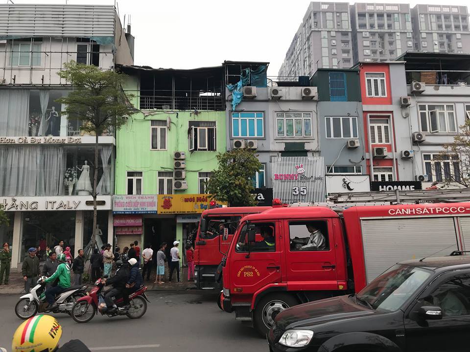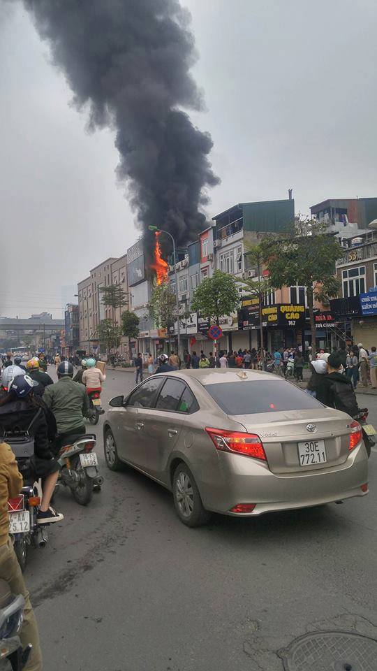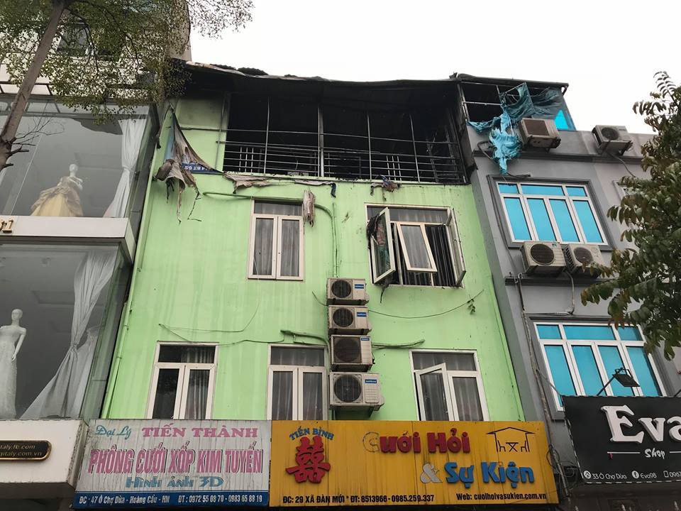 Tại thời điểm trên, một ngôi nhà cho thuê dịch vụ cưới hỏi trên đường Ô Chợ Dừa (Hà Nội) bốc cháy dữ dội ở tầng trên cùng.