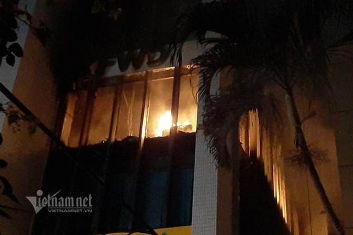 Đám cháy bốc lên từ tầng 2 tòa nhà. Ảnh: Vietnamnet