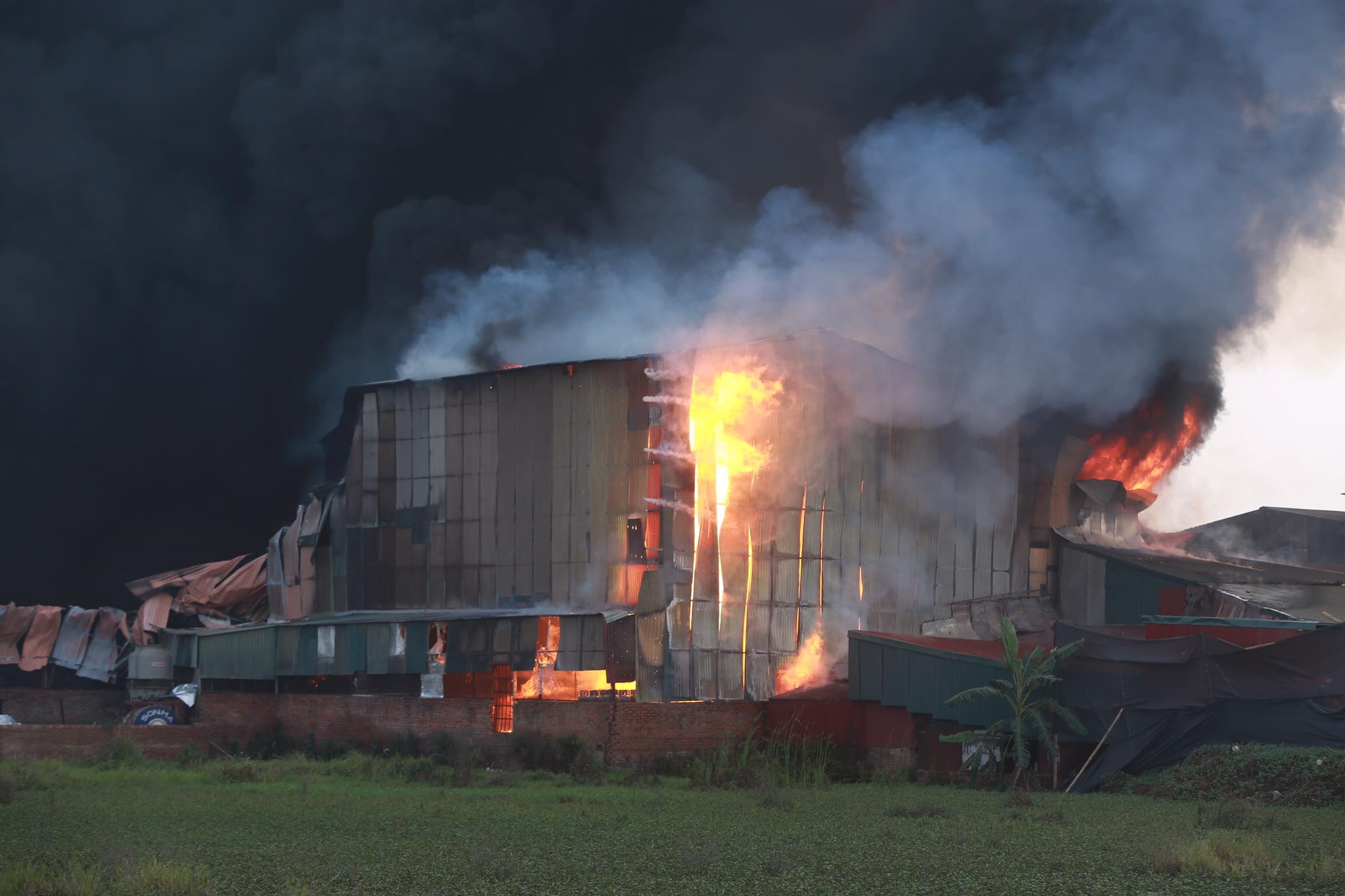 Khoảng 8h sáng ngày 9/3, ngọn lửa bùng phát dữ dội bao trùm khu nhà xưởng gia công sơn rộng hơn 1.000m2 ở thôn Đại Tự, xã Kim Chung, huyện Hoài Đức, Hà Nội, cột khỏi bốc cao hàng trăm mét khiến nhiều người hoảng loạn.