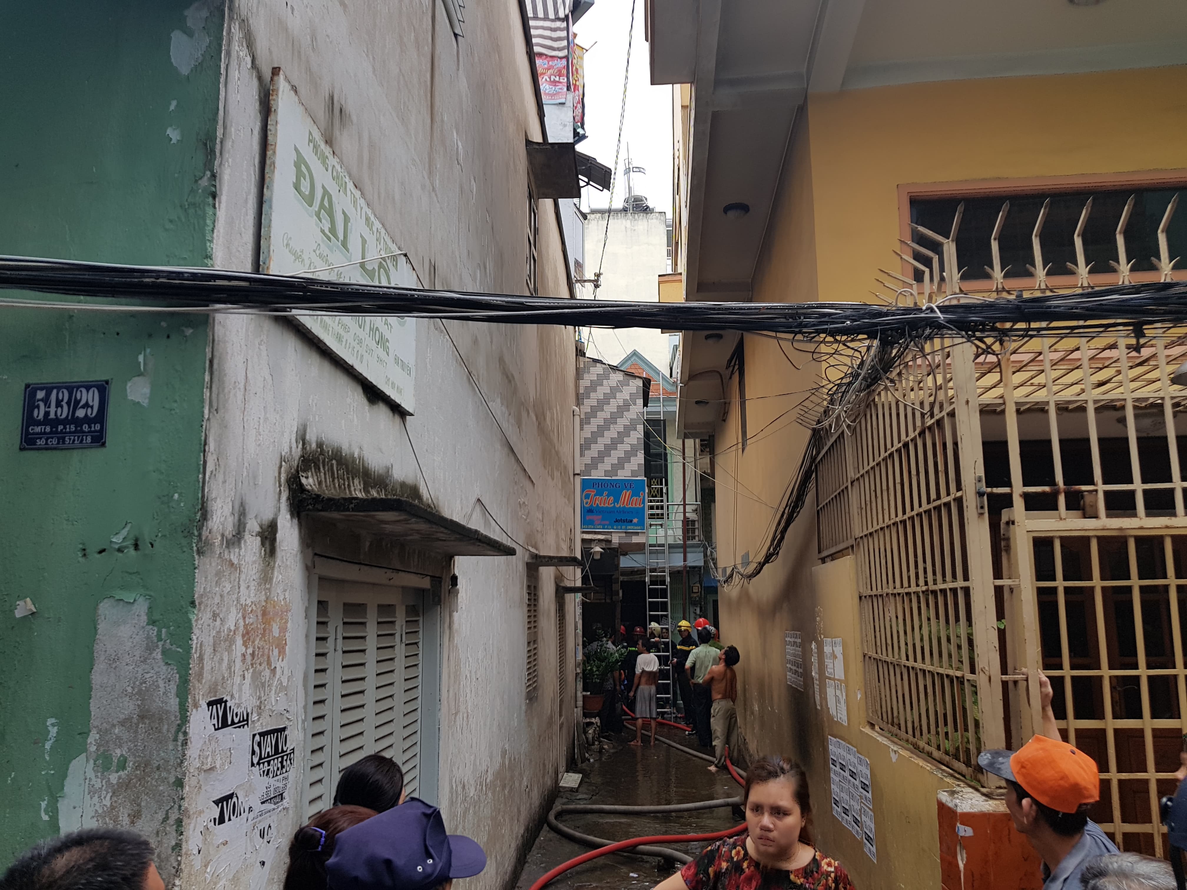 Theo thông tin ban đầu, khoảng 16h chiều 6/7, nhiều người dân sinh sống gần chợ Hòa Hưng, phường 15, quận 10, TP. HCM bất ngờ phát hiện khói lửa bốc cháy nghi ngút tại 1 căn nhà trong hẻm 543 đường Cách Mạng Tháng Tám.