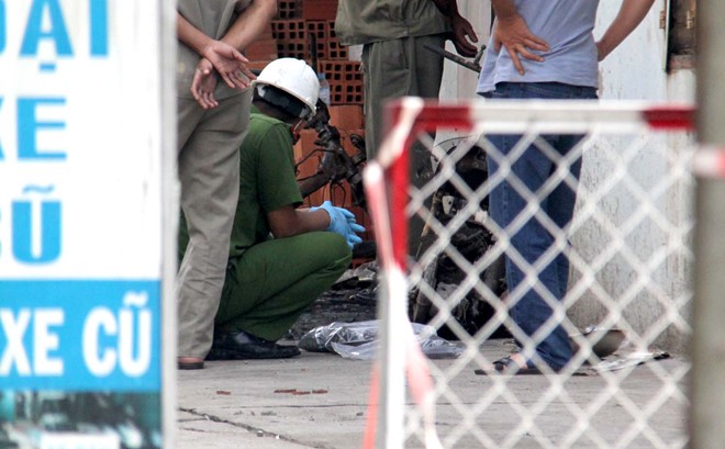 Cảnh sát đang khám nghiệm hiện trường, điều tra nguyên nhân. Ảnh: Lê Trai.