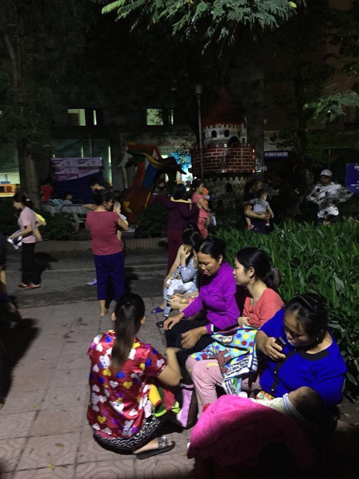 Nhiều người nhà bệnh nhi sợ hãi chạy xuống đất.