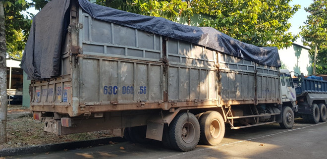 Lực lượng chức năng đã thu giữ tang vật gồm xe ô tô tải và xe cuốc dùng để san lấp chất thải.