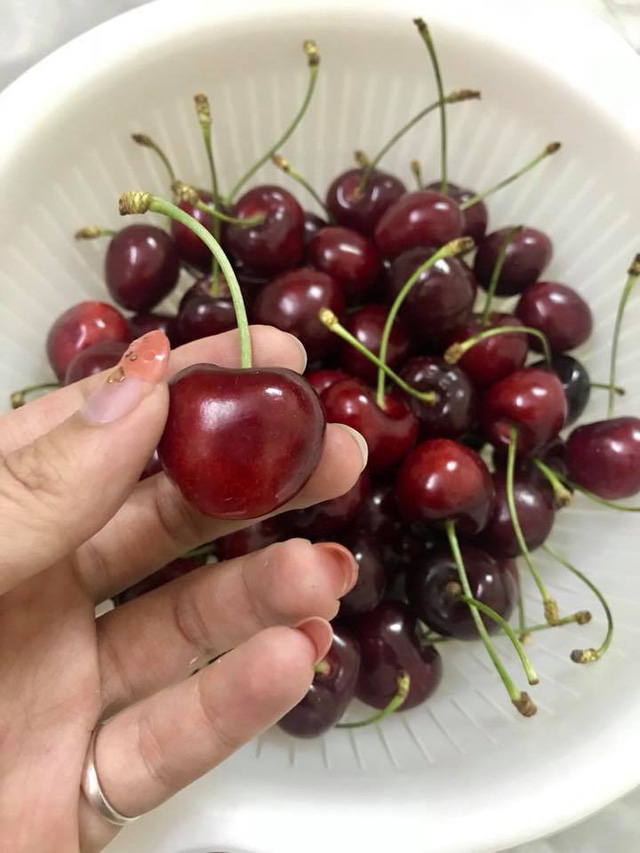 Loại cherry VIP này đắt hơn vì độ tươi của nó. Do đó, cuống chỉ cần không xanh, hoặc hơi có dấu hiệu héo là khách của anh Vũ đã từ chối nhận hàng.